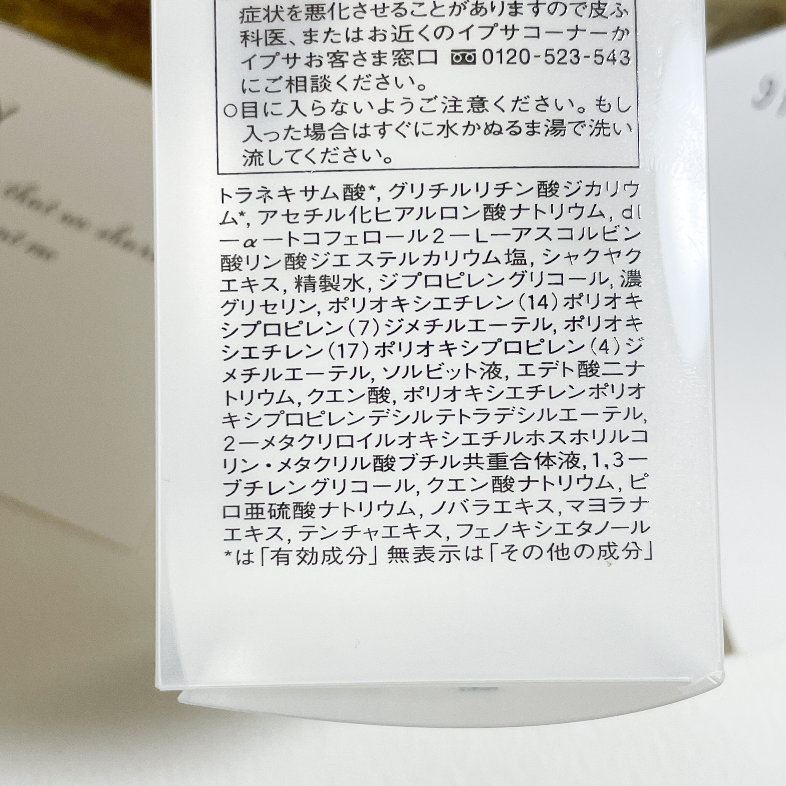 - <300ml 数量限定> 有効成分 トラネキサム酸、グリチルリチン酸ジカリウム その他の成分 フェノキシエタノール、濃グリセリン、クエン酸、ソルビット液、精製水、ジプロピレングリコール、ポリオキシエチレン(14)ポリオキシプロピレン(7)ジメチルエーテル、エデト酸二ナトリウム、ピロ亜硫酸ナトリウム、ノバラエキス、アセチル化ヒアルロン酸ナトリウム、dl-α-トコフェロール2-L-アスコルビン酸リン酸ジエステルカリウム塩、シャクヤクエキス、ポリオキシエチレン(17)ポリオキシプロピレン(4)ジメチルエーテル、ポリオキシエチレンポリオキシプロピレンデシルテトラデシルエーテル、2-メタクリロイルオキシエチルホスホリルコリン・メタクリル酸ブチル共重合体液、1,3-ブチレングリコール、クエン酸ナトリウム、マヨラナエキス、テンチャエキス <200ml> 有効成分 トラネキサム酸、グリチルリチン酸ジカリウム その他の成分 フェノキシエタノール、濃グリセリン、クエン酸、ソルビット液、精製水、ジプロピレングリコール、ポリオキシエチレン(14)ポリオキシプロピレン(7)ジメチルエーテル、エデト酸二ナトリウム、ピロ亜硫酸ナトリウム、ノバラエキス、アセチル化ヒアルロン酸ナトリウム、dl-α-トコフェロール2-L-アスコルビン酸リン酸ジエステルカリウム塩、シャクヤクエキス、ポリオキシエチレン(17)ポリオキシプロピレン(4)ジメチルエーテル、ポリオキシエチレンポリオキシプロピレンデシルテトラデシルエーテル、2-メタクリロイルオキシエチルホスホリルコリン・メタクリル酸ブチル共重合体液、1,3-ブチレングリコール、クエン酸ナトリウム、マヨラナエキス、テンチャエキス <INDIGO限定デザイン(300mL)> トラネキサム酸、グリチルリチン酸ジカリウム、アセチル化ヒアルロン酸ナトリウム、dl-α-トコフェロール2-L-アスコルビン酸リン酸ジエステルカリウム塩、シャクヤクエキス、精製水、ジプロピレングリコール、濃グリセリン、ポリオキシエチレン(14)ポリオキシプロピレン(7)ジメチルエーテル、ポリオキシエチレン(17)ポリオキシプロピレン(4)ジメチルエーテル、ソルビット液、エデト酸二ナトリウム、クエン酸、ポリオキシエチレンポリオキシプロピレンデシルテトラデシルエーテル、2-メタクリロイルオキシエチルホスホリルコリン・メタクリル酸ブチル共重合体液、1,3-ブチレングリコール、クエン酸ナトリウム、ピロ亜硫酸ナトリウム、ノバラエキス、マヨラナエキス、テンチャエキス、フェノキシエタノール <200mL 限定デザイン> 有効成分 トラネキサム酸、グリチルリチン酸ジカリウム その他の成分 アセチル化ヒアルロン酸ナトリウム、dl-α-トコフェロール 2-L-アスコルビン酸リン酸ジエステルカリウム塩、シャクヤクエキス、精製水、ジプロピレングリコール、濃グリセリン、ポリオキシエチレン(14)ポリオキシプロピレン(7)ジメチルエーテル、ポリオキシエチレン(17)ポリオキシプロピレン(4)ジメチルエーテル、ソルビット液、2-メタクリロイルオキシエチルホスホリルコリン・メタクリル酸ブチル共重合体液、エデト酸二ナトリウム、クエン酸、ポリオキシエチレンポリオキシプロピレンデシルテトラデシルエーテル、1,3-ブチレングリコール、クエン酸ナトリウム、ピロ亜硫酸ナトリウム、ノバラエキス、マヨラナエキス、テンチャエキス、フェノキシエタノール <ディープブルー(300ml)> 有効成分 トラネキサム酸、グリチルリチン酸ジカリウム その他の成分 アセチル化ヒアルロン酸ナトリウム、dl-α-トコフェロール2-L-アスコルビン酸リン酸ジエステルカリウム塩、シャクヤクエキス、精製水、ジプロピレングリコール、濃グリセリン、ポリオキシエチレン(14)ポリオキシプロピレン(7)ジメチルエーテル、ポリオキシエチレン(17)ポリオキシプロピレン(4)ジメチルエーテル、ソルビット液、エデト酸二ナトリウム、クエン酸、ポリオキシエチレンポリオキシプロピレンデシルテトラデシルエーテル、2-メタクリロイルオキシエチルホスホリルコリン・メタクリル酸ブチル共重合体液、1,3-ブチレングリコール、クエン酸ナトリウム、ピロ亜硫酸ナトリウム、ノバラエキス、マヨラナエキス、テンチャエキス、フェノキシエタノール <ブリリアントブルー(300ml)> 有効成分 トラネキサム酸、グリチルリチン酸ジカリウム その他の成分 アセチル化ヒアルロン酸ナトリウム、dl-α-トコフェロール2-L-アスコルビン酸リン酸ジエステルカリウム塩、シャクヤクエキス、精製水、ジプロピレングリコール、濃グリセリン、ポリオキシエチレン(14)ポリオキシプロピレン(7)ジメチルエーテル、ポリオキシエチレン(17)ポリオキシプロピレン(4)ジメチルエーテル、ソルビット液、エデト酸二ナトリウム、クエン酸、ポリオキシエチレンポリオキシプロピレンデシルテトラデシルエーテル、2-メタクリロイルオキシエチルホスホリルコリン・メタクリル酸ブチル共重合体液、1,3-ブチレングリコール、クエン酸ナトリウム、ピロ亜硫酸ナ