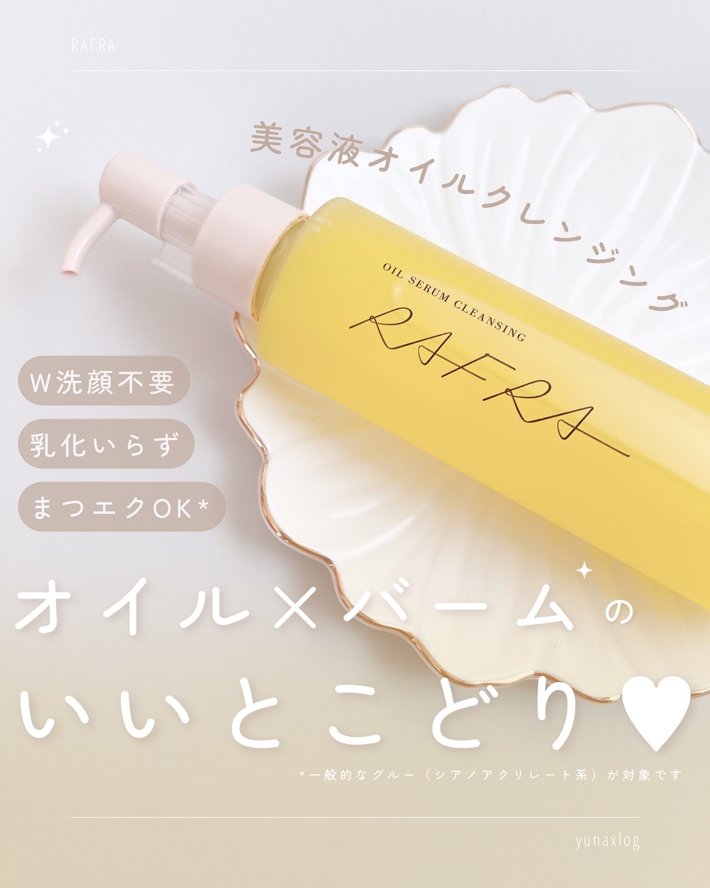 \時間がない夜も濡れた手OK!W洗顔不要!/ @rafra_official@cchannel_lemonsquareRAFRAオイルセラムクレンジング 肌のことを考えてバームを使っているけれど、蓋を開ける・スパチュラを使うのが面...