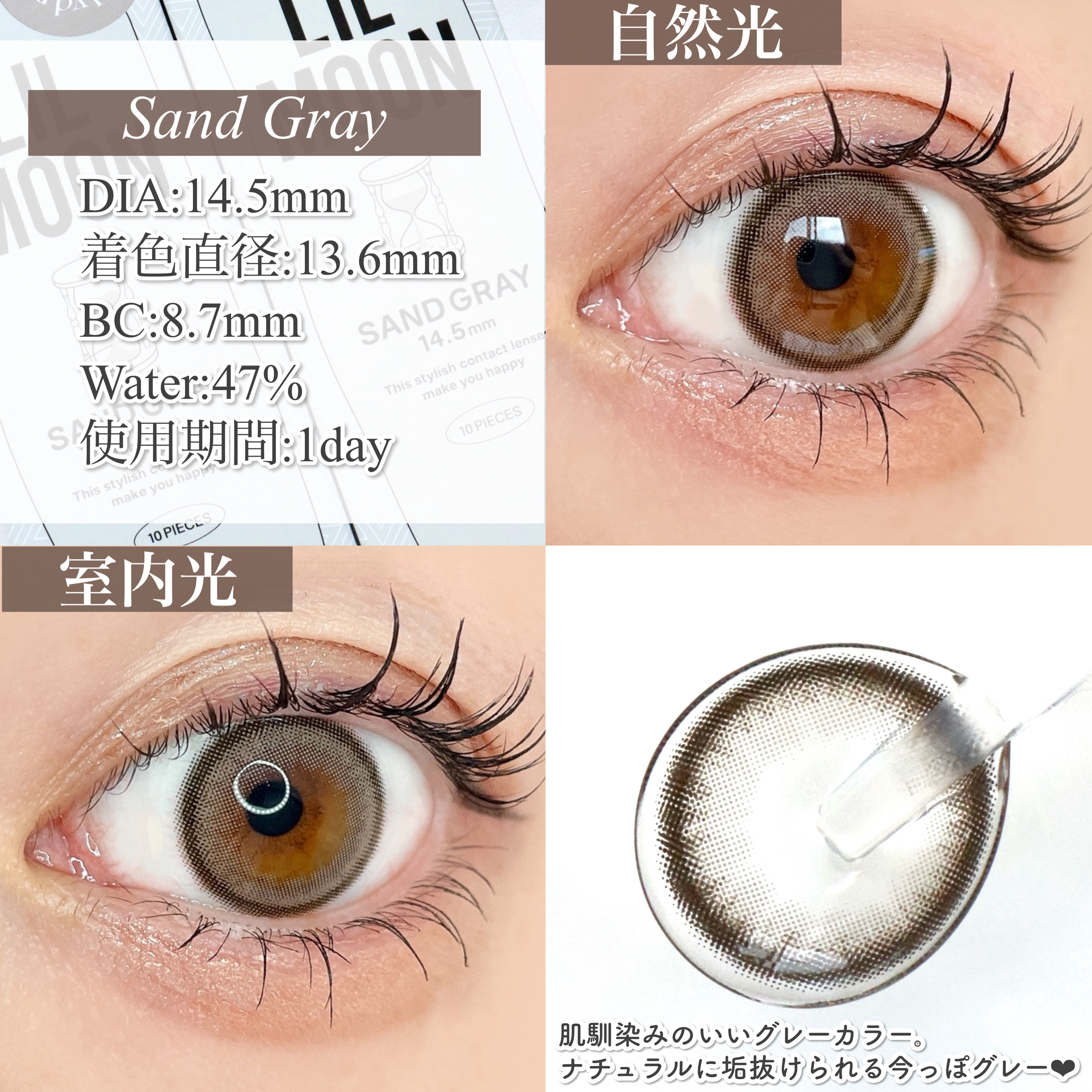 裸眼級に快適な付け心地の高発色なシリコーンシリーズ👀💞 酸素透過度(Dk/t):187 と、酸素を通しやすく乾燥しにくい素材でレンズ装着時の負担や乾きを軽減してくれるシリーズとなっています✨ 今回ご紹介するのは、今っぽグレーの「Sand Gray (サンドグレー)」🏜️ 馴染みの良い高発色なグレージュカラーでナチュラルに垢抜けを叶えてくれます👏🏻🌟 じゅわっとしたぼかしフチで、儚げな色素薄い系の瞳になれて可愛すぎた🥹💖