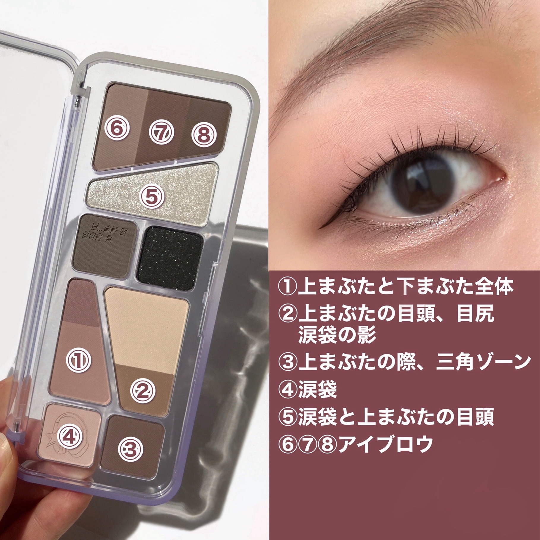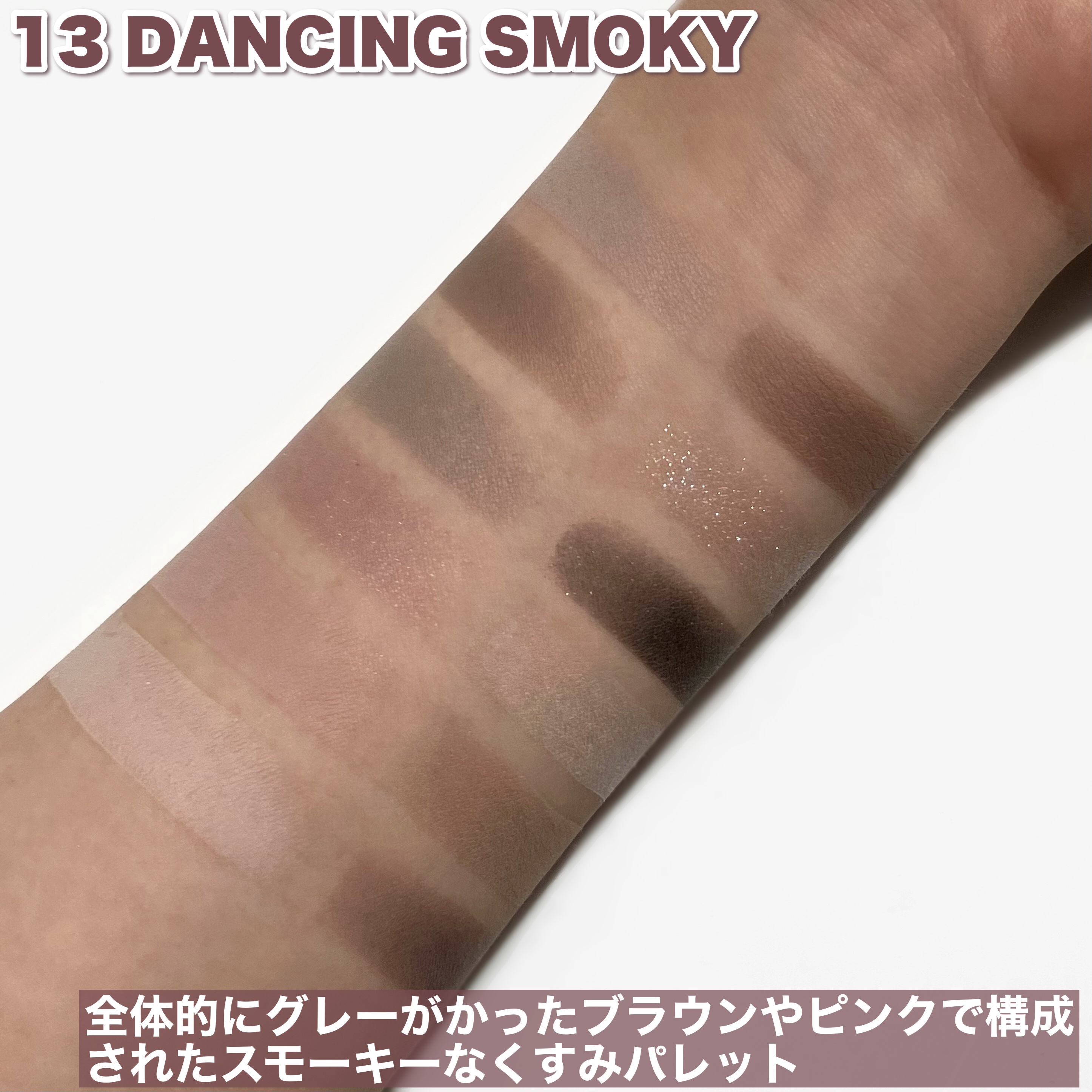 - 軽やかテクスチャーが目元に密着し、抜け感のある色使いが楽しめるデイリーパレット <101 ローズダイアリー(ROSE DIARY)> オーナメントを飾り付けたローズツリーのようにほのかに輝くウォームローズピンクカラー(イエベ秋)。 <102 ミュートアーカイブ(MUTE ARCHIVE)> 少女たちのピンキーなホームパーティームードを盛り込んだクールでヌーディーなミューテッドモブカラー(ブルべ夏ミュート)。 <103 バニラヘイズ(VANILLA HAZE)> 焼きたてのジンジャークッキーのように暖かく香ばしいウォームミュートカラー(イエベ秋ミュート)。 <104 GHR ピンク(GYEONGHOERU FLOWER FESTIVAL)> 春の日の美しく優雅な色を詰め込んだピンクカラーパレット。イエベ春&ブルベ夏におすすめのパレットです。 <105 DSG バイオレット(DEOKSUGUNG STONE WALL ROAD)> ほんのりピンクがかった柔らかなモーブカラーパレット。ブルベ夏&ブルベ冬におすすめのパレットです。 <106 DBG コーラル(GYEONGBOKGUNG STROLL)> 明るい日差しの色を取り入れたデイリーなコーラルカラー。イエベ春&ブライト秋におすすめのパレットです。