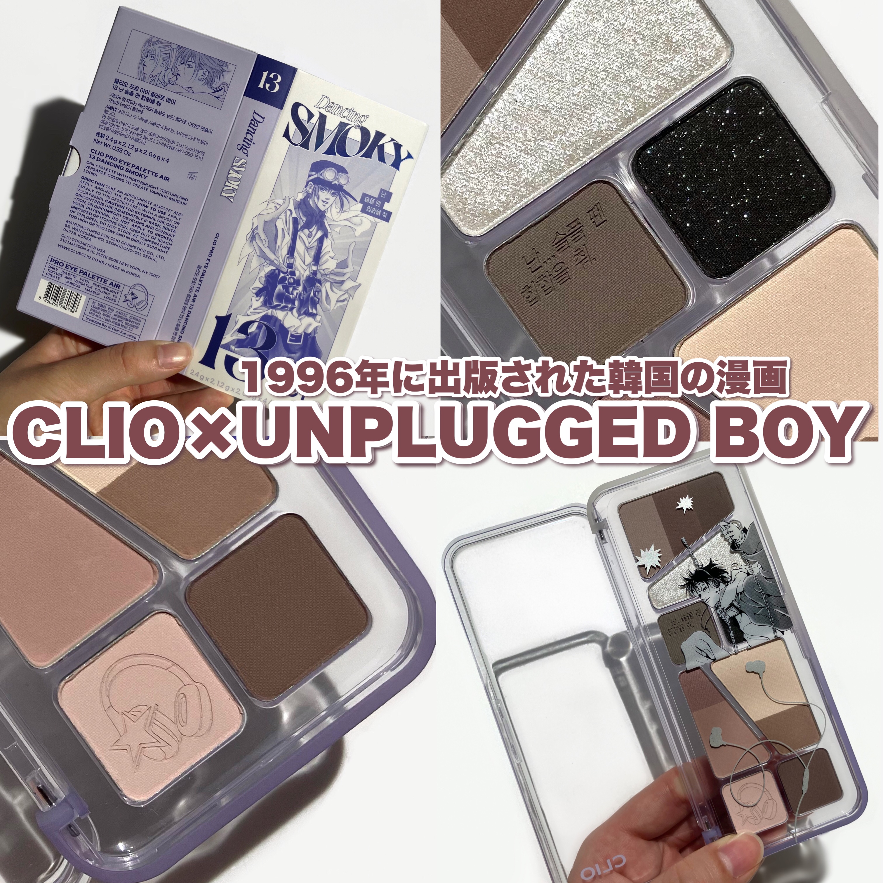 新色は韓国で大人気の漫画 アンプラグドボーイとのコラボカラー🫢💕 2段、3段階のグラデーションになっているので簡単にトレンド感のあるスモーキーメイクが試せちゃう◎ しっとりとした密着力の高い粉質は健在ですよ!