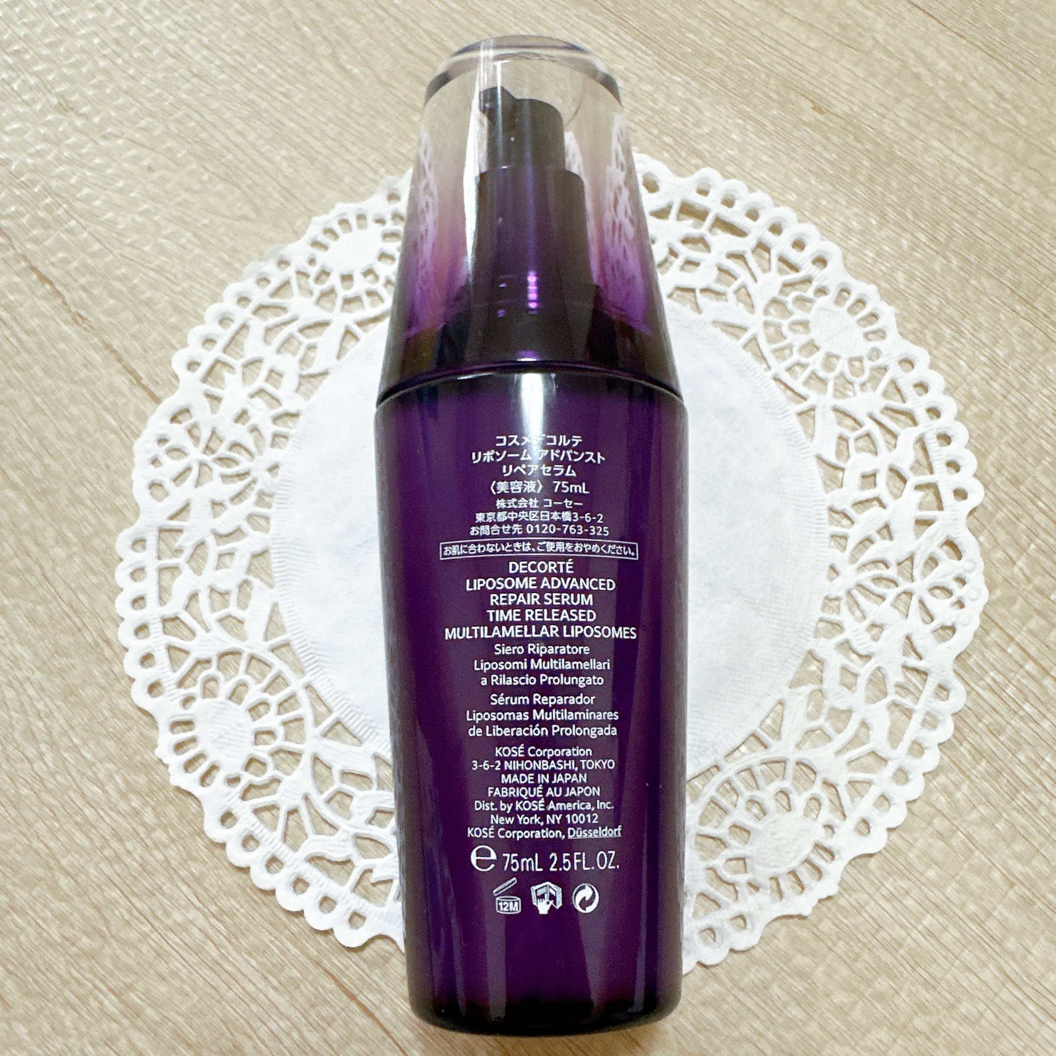DECORTÉリポソームアドバンスト リペアセラムトライアルサイズ12ml¥1,500公式サイトにて¥3,500相当が¥1,500で購入できます。10日間分だそうです。私はワンプッシュで、夜だけの使用なので1ヶ月くらいで無くなりそうです。使用...
