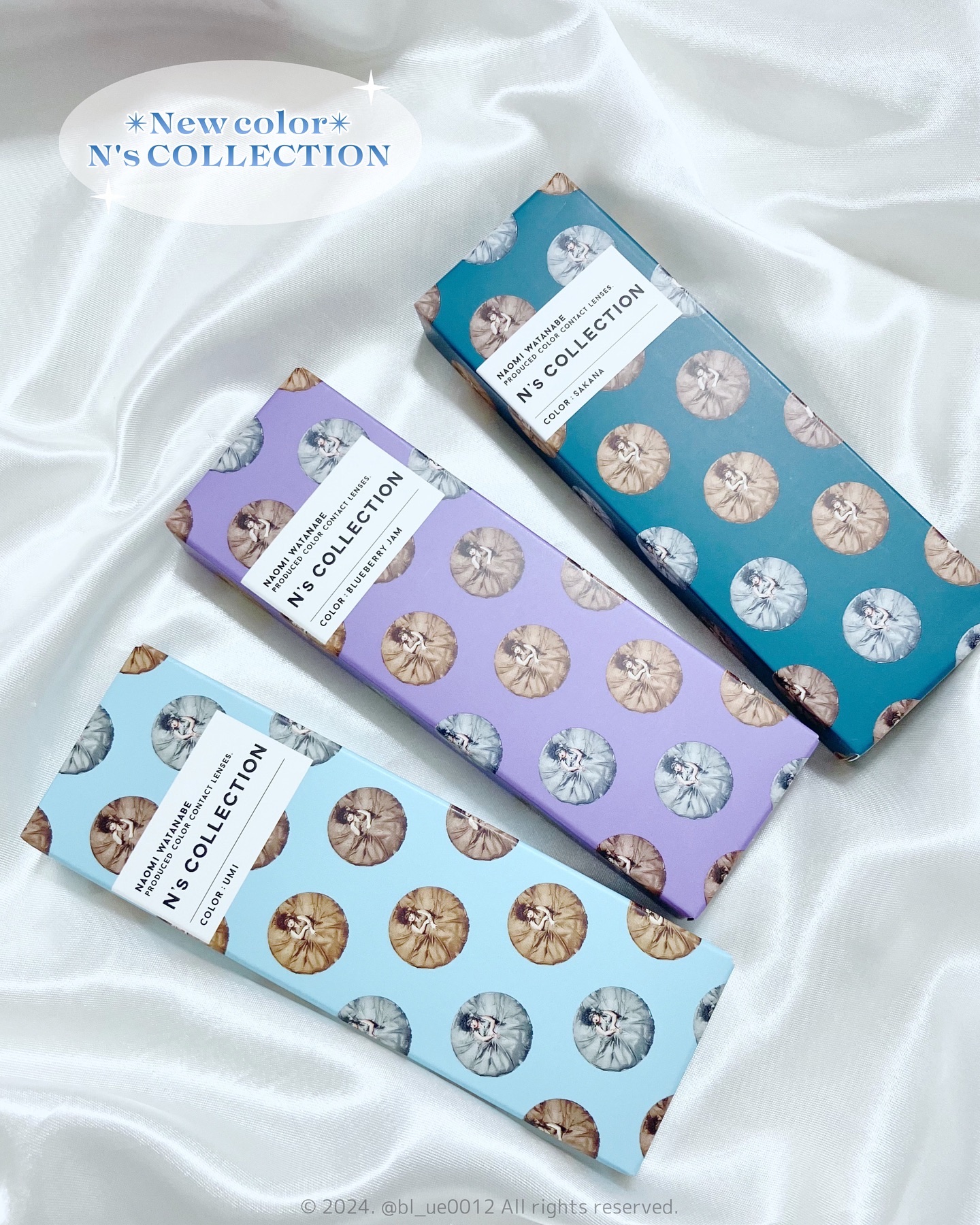 渡辺直美さんプロデュースカラコン👀🤍 毎回名前のセンスが良すぎてつける前からワクワクしちゃうんだけど今回も可愛かった🫶 鮮やかな水光グラデーションが海の宝石のように輝く高発色ブルーレンズ✨ 鮮やかなブルーでとにかく盛れる🥺! ブルーベリーのようなぷるぷる感と細フチが愛らしいモーヴグレーレンズ🫐 じゅわっとかわいい雰囲気に😍💕甘めレンズだよ✨