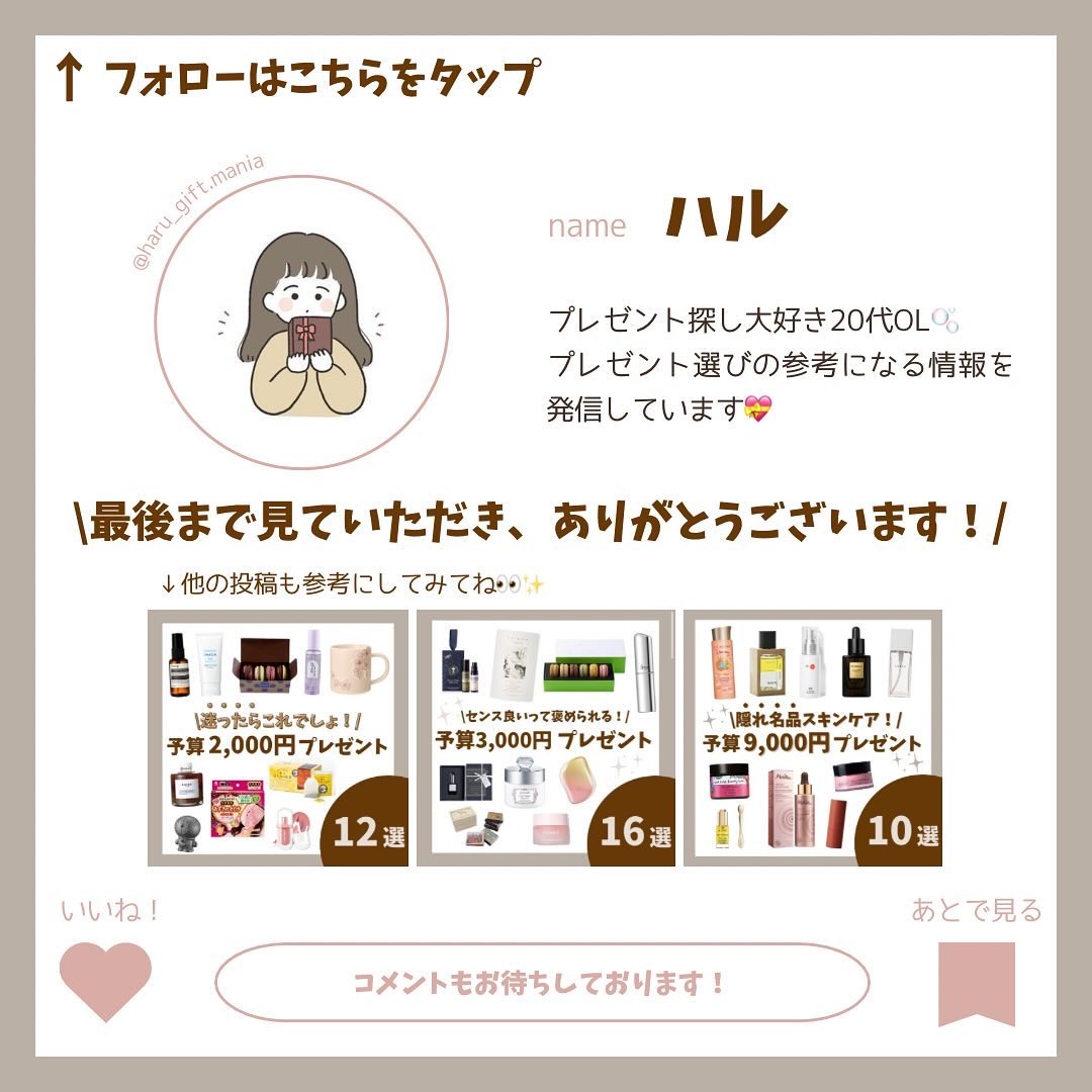 あげたら絶対喜ばれるプレゼントをまとめてみたので、参考にしてみてください🫶 このアカウントでは、相手・シーン・予算別にご紹介! プチプラからハイブランドまでをご紹介しています✨ 友達へのプレゼント お手軽ギフト