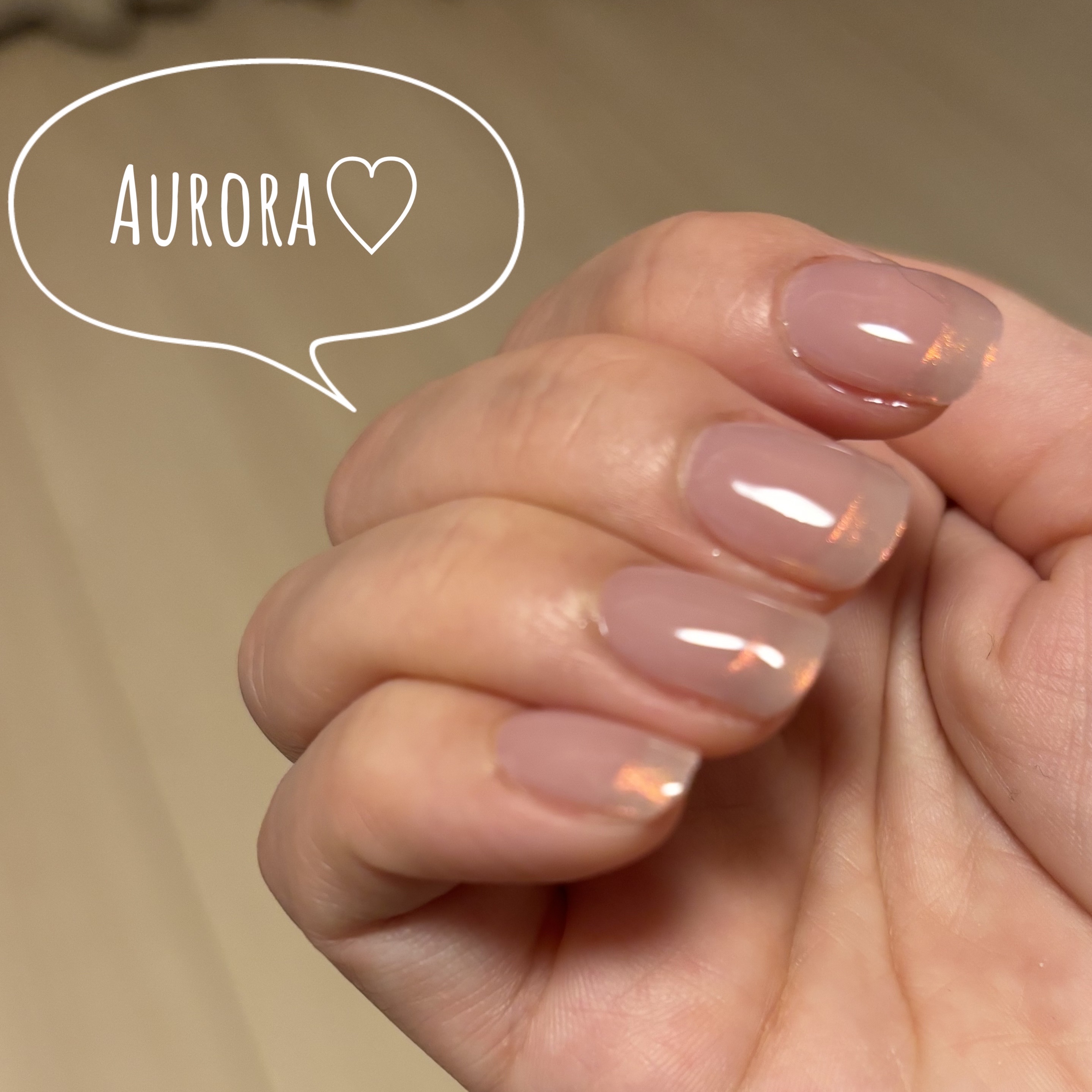 ぴったり2週間でチェンジ! サマーセールで4つ買いました。 今回はmarblissnailコラボ、指先に輝きあふれるオーロラフレンチネイル。 オーロラのフレンチなので目立たずかわいい。そしてナチュラルカラー。肌馴染み抜群。