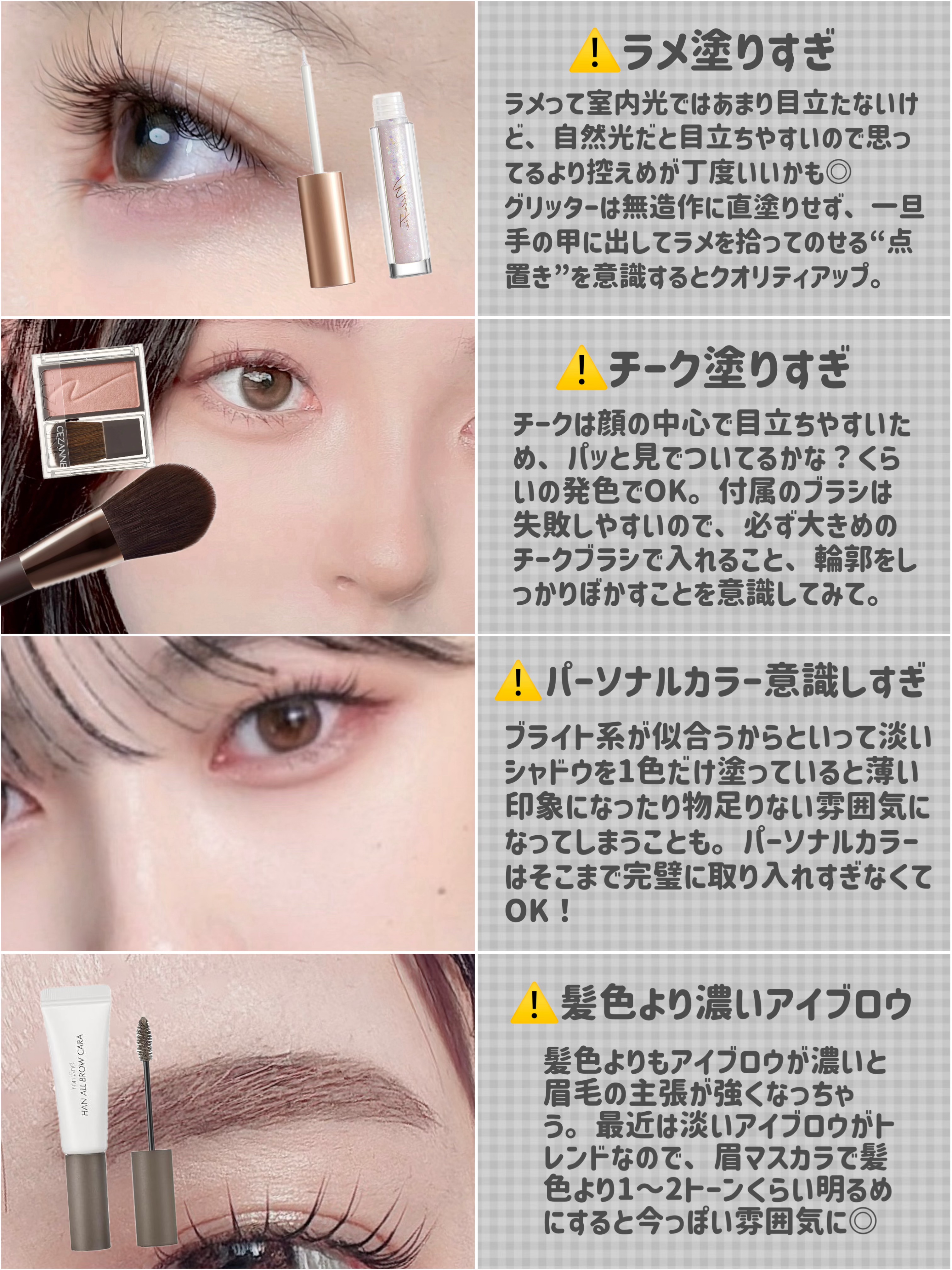 rom&nd ベターザンパレット 01PAMPAS GARDEN キャンメイク アイバッグコンシーラー 02ピンクベージュ CEZANNE ストレッチコンシーラー 30オレンジ系 これどんなに濃いクマも消える◎ やり方は画像を見てください🫶🏻 ラメを使わずに盛りたい時や、あざとく盛りたい時におすすめ!
