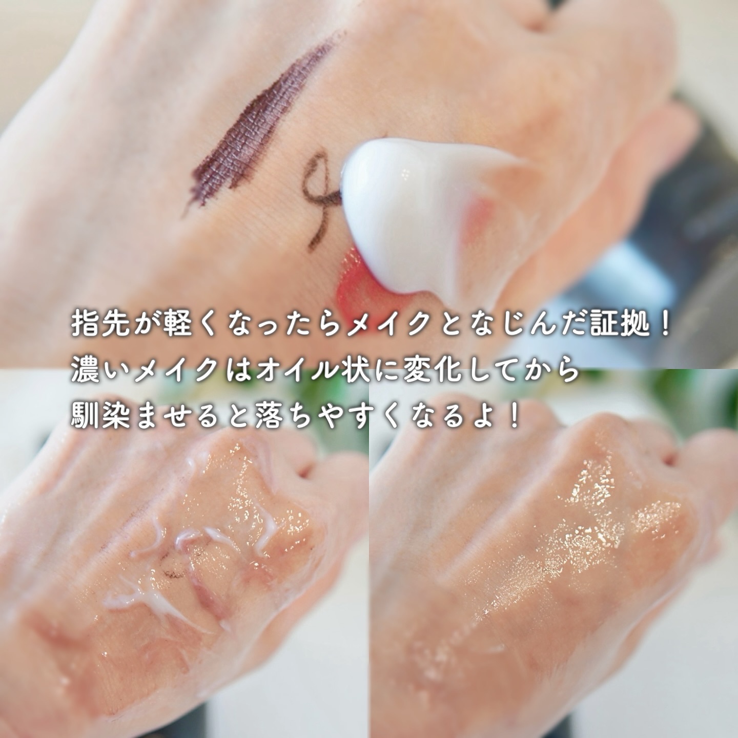 オイル成分と水分が重なり合う特殊クリームが使用されているから なじませるとふわっとオイルに変化してメイクや汚れを吸着してくれるよ︎👍🏻 しかもメイクをしっかり落とすだけじゃなくうるおい成分も配合されてるからつっぱり感なく使用できるのも良かった🙆🏻♀️💞 普段、クリームタイプのクレンジングを使ったことがない方にもオススメしたい◎ 私もオイル派だけど濃いめのメイクやティント系もしっかりオフ出来て感動🥹💗