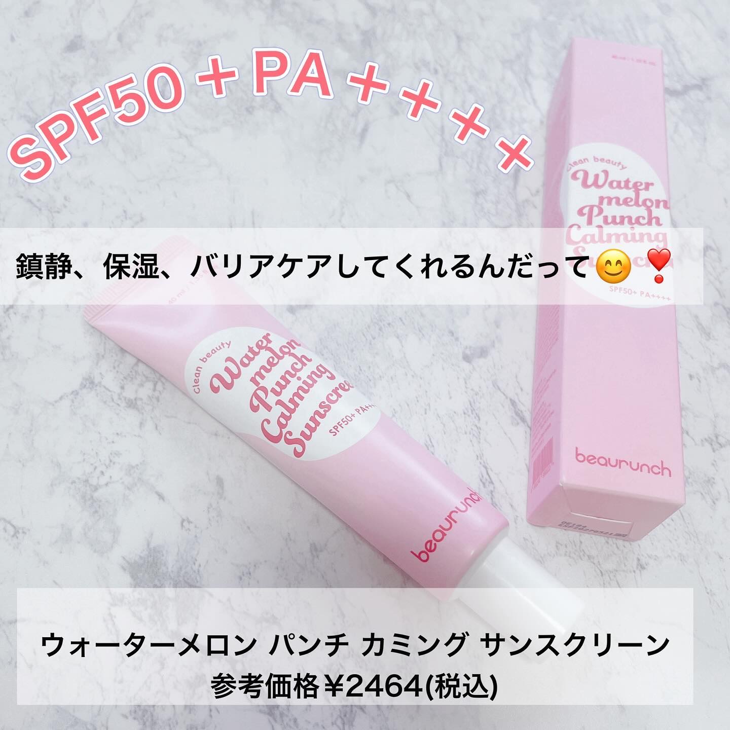 ◆2025使い切りレビューNo.53ビューランチウォーターメロンパンチカーミングサンスクリーンSPF50+PA++++すごくスイカの美味しそうな香りがする、スイカエキス配合の日焼け止め。テクスチャーも滑らかで瑞々しく、水分でもちもちするような...