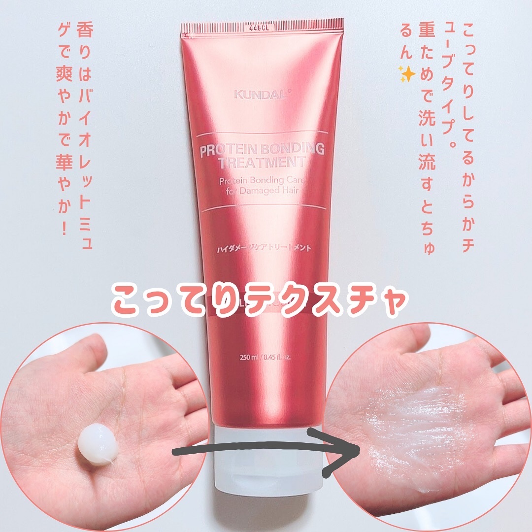 韓国で大人気のプレミアムヘアケアブランド「KUNDAL(クンダル)」。プロテインダメージケアラインのシャントリを使わせて頂いた。 植物由来のタンパク質成分で補修するヘアケアライン。他にも、6種のヒアルロン酸、3種の花のエキスが配合され、うるおいとツヤのある仕上がりへ導くとのこと。 香りが良い!専門の調香師と研究所による香りは、上質な高級感があって、しかも長続き。今回使用した香り「レザーアイリス」は、レザーのスモーキーで落ち着いた香りと、アイリスの上品な香りの対照的な調和がオシャレ✨