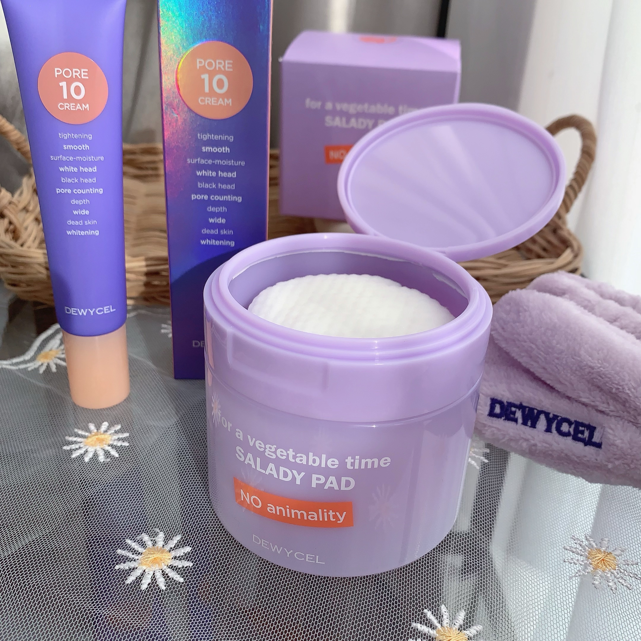 スキンケアだけでなく、毛穴ケアまでできる.ᐟ DEWYCEL(デュイセル) ⋆⸜ ポアテンクリーム・サラディパッド ⸝⋆ 水分補給されるのに、毛穴が目立たなくなり化粧が崩れにくくなる😳 韓国免税店のマスクパック部門TOP3製品 毛穴ケアの効果だけでなく、角質ケア、肌の水分補給、肌鎮静などの効能⟡.·