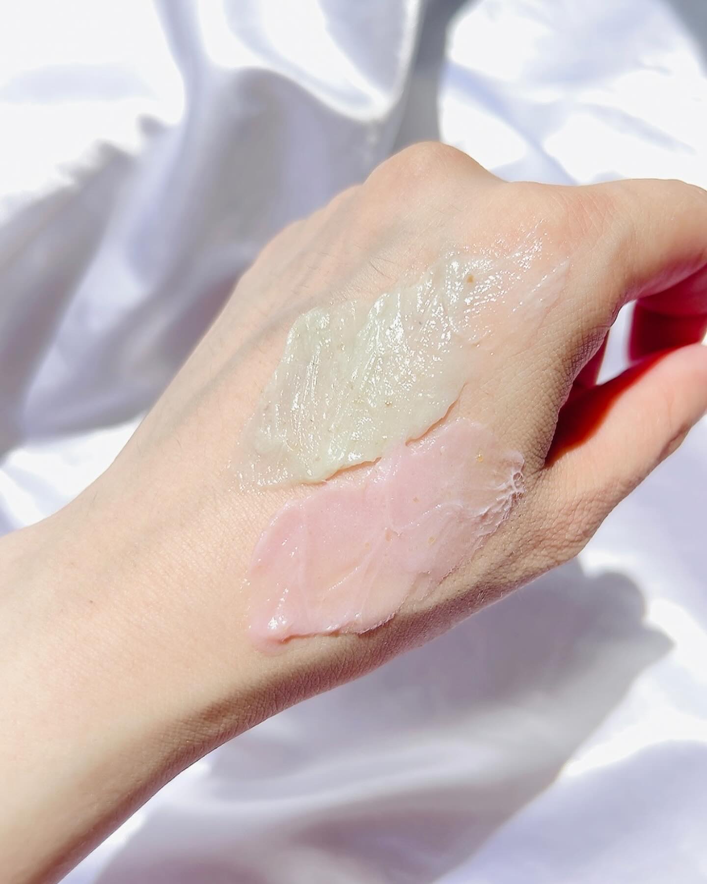 ピンクアロエメレンゲクレンザーはグリーンとピンクの可愛いクレンザーです💁♀️ ピンクアロエを丸ごと込めたよりしっとりしたメレンゲソープ♡ これ一つでクレンジングから鎮静ケア🙆♀️ 微細粉末スクラブ配合で刺激は少なく角質ケア✨ 国内産豆スクラブ、国内産緑豆スクラブ