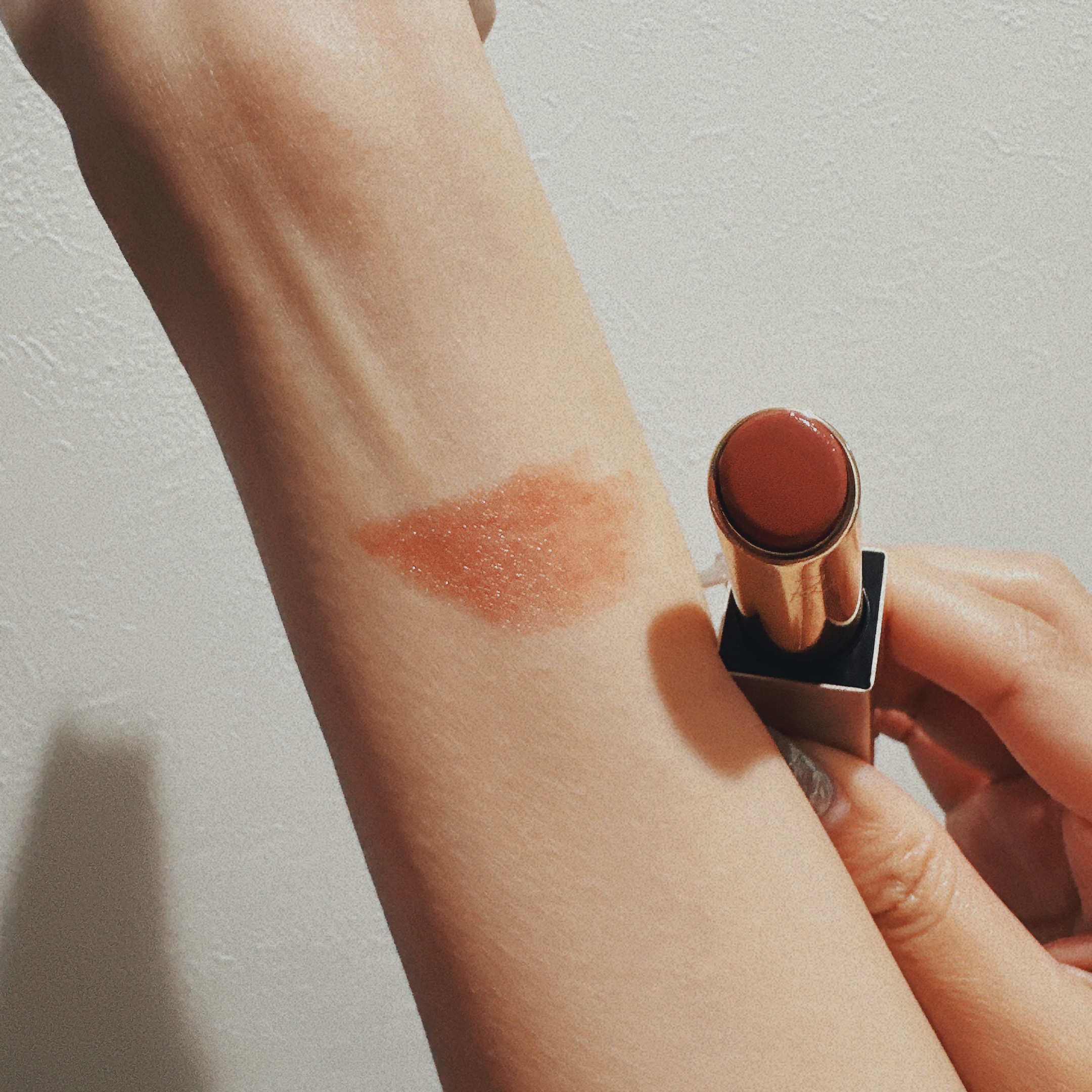 ウォームヌード・肌馴染みの良いオレンジベージュ みずみずしく透き通るような塗り心地🥹で、塗った後も潤いが持続性してて、これからの乾燥の季節に大活躍してくれそうだ〜😏 パッケージも三角の形をしてて可愛かったので思わずパシャリ📸