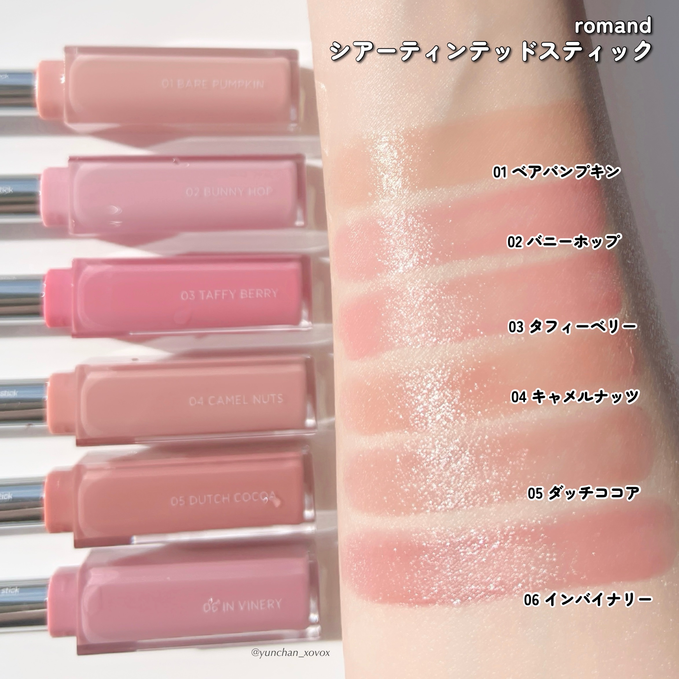 可愛いですね♡ ロムアンドといえばジューシーラスティングティントが好きですが、こちらはデイリー使いできそうなカラーなので楽しみです♡ どの色買うか迷います。