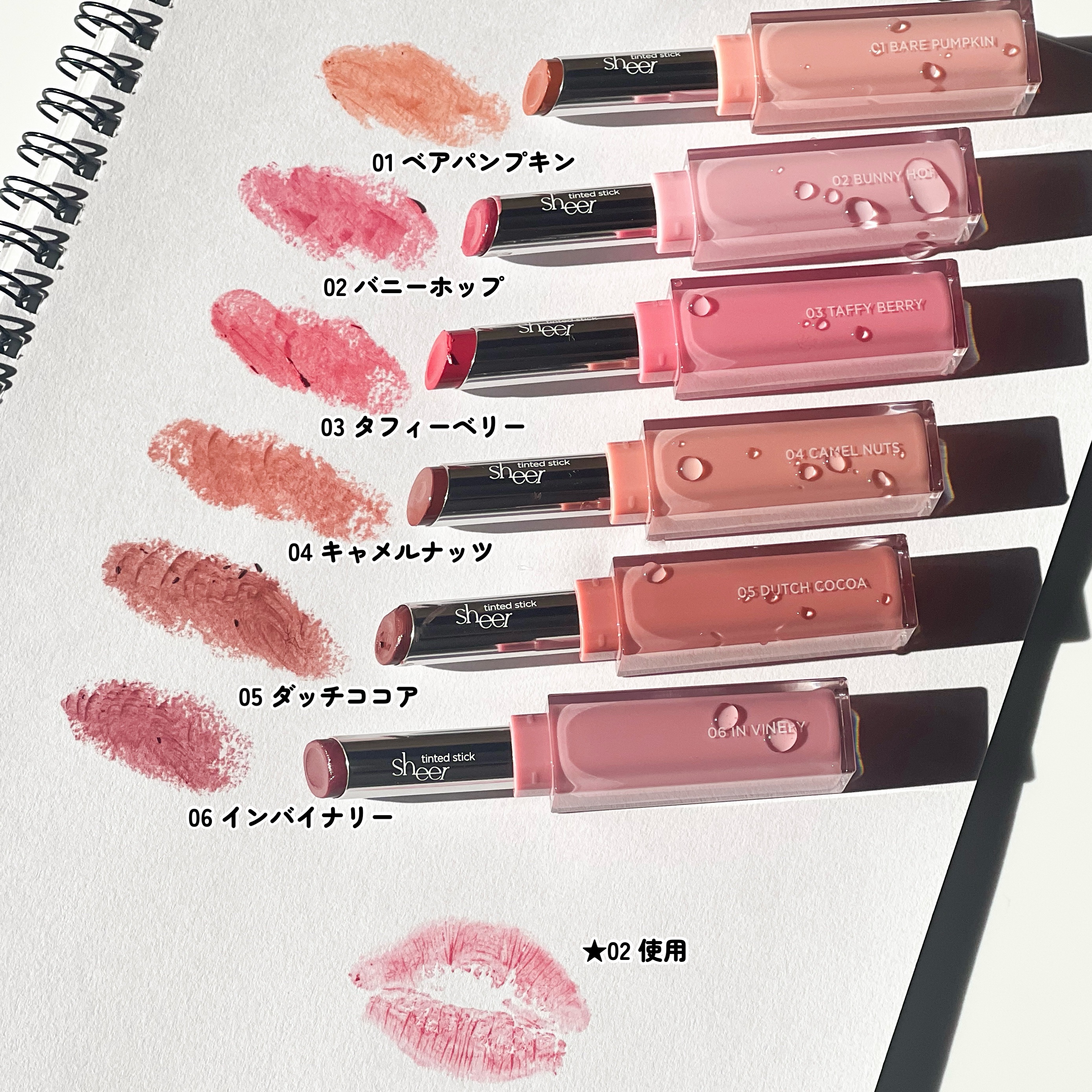 - 日本人の好みに合わせて肌馴染みのよいヌーディなカラーで、しっとりとしたシアーな光沢感のリップを新開発。 今までのラインナップに比べてトーンダウンしたカラーで日常のメイクから使いやすい全6色を発売。 ティントを塗ると乾燥を感じていた人も多いはず。 「シアーティンテッドスティック」は、桜、スイレン、バラ、蓮の4つの花から抽出したオイル配合で、乾燥しにくく塗った瞬間のツヤツヤ感を長時間持続させることが可能な優れもの。 2024年8月30日(金)よりロフト・プラザ・アットコスメ(※1)より先行発売いたします。(※2) (※1)一部店舗を除く。 (※2)店頭開始日となり、購入可能日は各店舗により異なります。