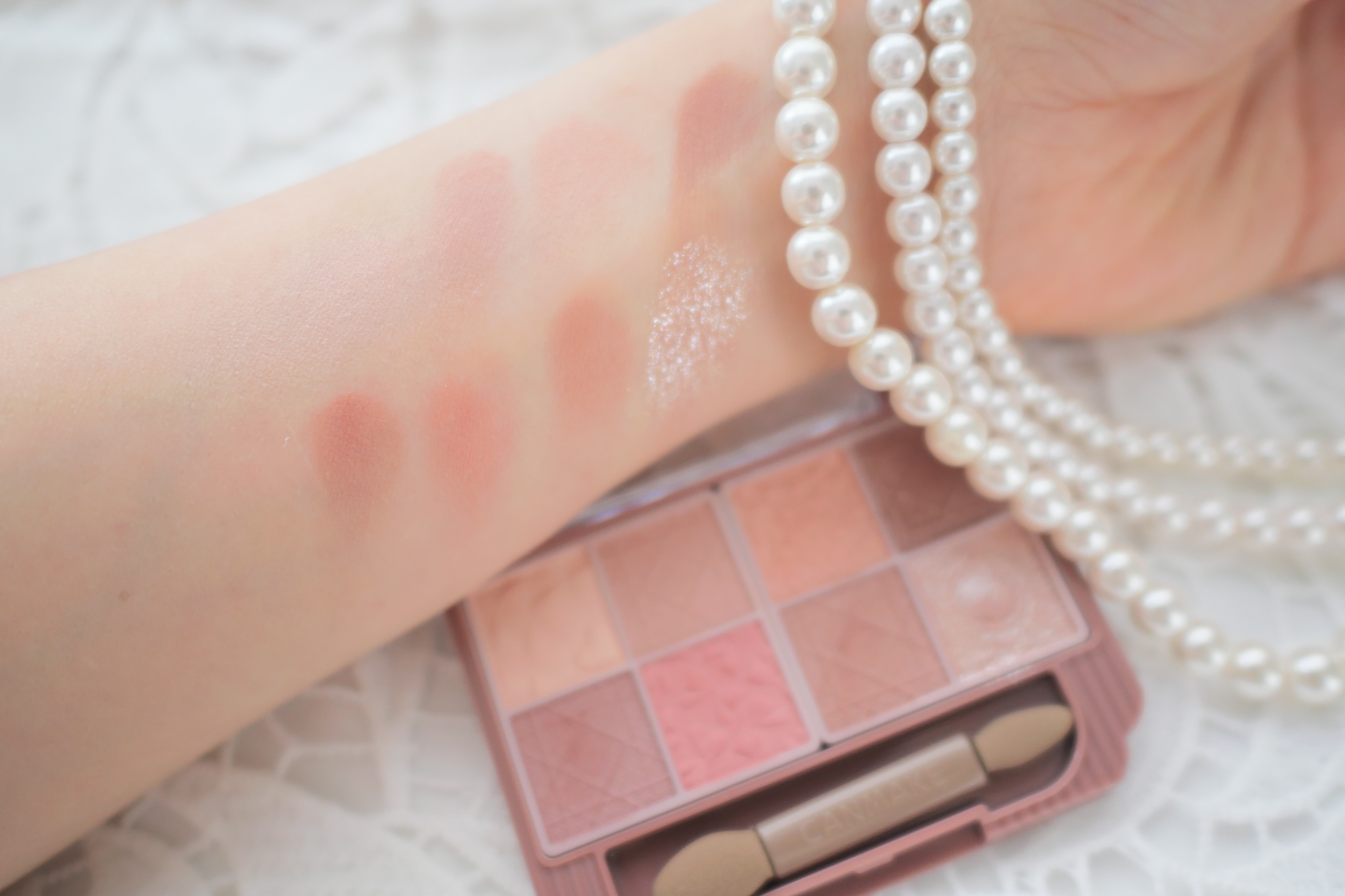 目元と頬の絶妙カラーコーディネートで垢抜けメイクが楽しめるアイ&チークパレットはくすみ系のローズブラウンを中心にマットからシマー、グリッター、濡れ感ラメに加えてアイ&チークと5種類のなる質感でバランスのとれたニュアンスEYEが完成する優れもの。 朝は時間がなくてチークをどうしよう!?って悩むことが多いので、アイメイクと一緒にカラーコーディネートされているのがよき。 粉飛びせず、しっとりした質感のアイシャドウで発色もよく、ラメのキラキラも上品な雰囲気です。 チークは発色は控えめながら、ふわっと入れると自然なツヤと印影が出てメイクが引き締まります。