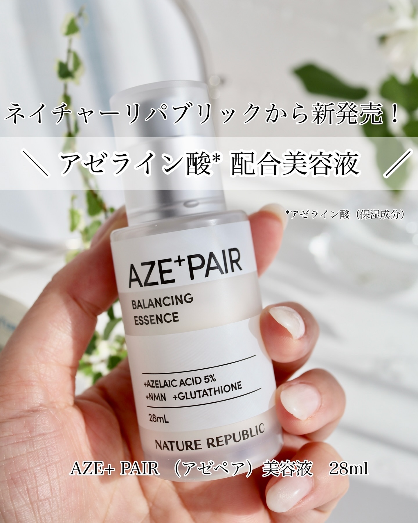 - 【韓国の肌管理*から発想を得たアゼペア】 高濃度*1の純アゼライン酸*2と厳選した美容成分が皮脂トラブル*3や肌荒れをしっかり防ぎながらも毛穴*4をケアして透明感*5のある肌へと整えます。 美容液には純アゼライン酸*2を5%配合しており、ミルクタイプのエッセンスが濃密なうるおいを素肌に届けます。普段のスキンケアにプラスするだけで皮脂トラブル*3をケアし、肌荒れを防ぎます。 先行発売:2024年8月31日よりロフト、PLAZA・MINiPLA、公式オンラインストアにて先行発売。 *うるおいケアのこと*1当社比*2保湿成分*3過剰な皮脂の分泌による肌荒れのこと*4乾燥によって開いた毛穴のこと*5うるおいを与えることによる肌印象のこと