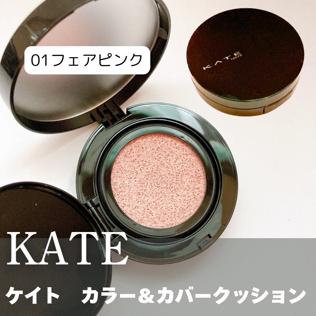 KATEのカラー&カバークッションが凄い!! カバー力も良くてキープ力も良い、というとんでもないアイテムです😳✨ 私は01のフェアピンク推しです!!黄ぐすみが飛んで透明感+血色感が出るので明るい印象に☺️ 塗り広げるとピターっと密着して、立体感あるセミマットな陶器肌に✨ 長時間お出かけして帰ってきても綺麗なまま、、、!