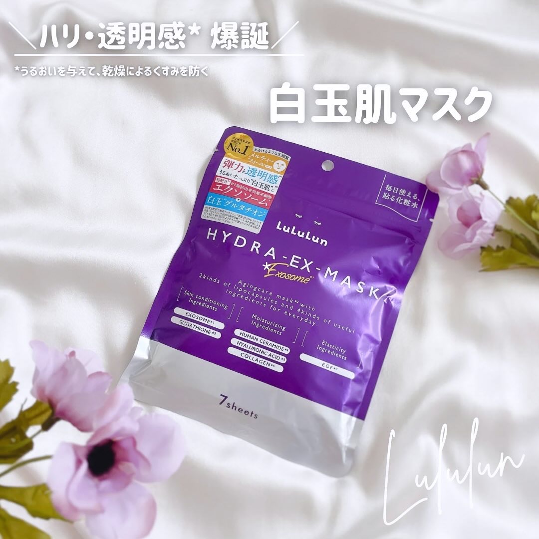 - ルルルンハイドラシリーズから新登場。うるおいにプラスするのは、「エクソソーム*1」。先端再生テクノロジーにインスパイアされた、デイリーエイジングケア※1マスクです。白玉※2グルタチオン*2をプラス配合し、弾力・透明感※3・つやめきのあるなめらかなお肌へ導きます。 (*1 整肌成分 ヒト脂肪由来間葉系細胞エクソソーム *2 整肌成分 グルタチオン、アルブチン、レシチン ※1 年齢に応じて肌へうるおいと弾力を与えるケアのこと ※2 白玉のようなキメが整ったツヤのある肌のこと ※3 うるおいを与えて、乾燥によるくすみを防ぐ)