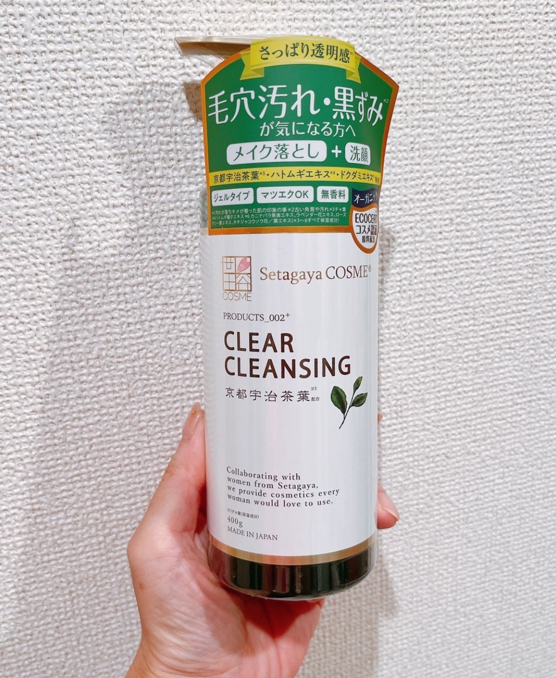 京都宇治茶葉などの毛穴ケアに特化した成分を配合したクレンジングジェル。独自開発のクッションジェルで肌摩擦を軽減しメイクや汚れを落とします。 やさしい使い心地ですが、くるくるしているとメイク汚れが浮き上がって綺麗に落ちました!✨ 400gも入った大容量タイプなので、惜しみなく使えてコスパも良いと思います🥰