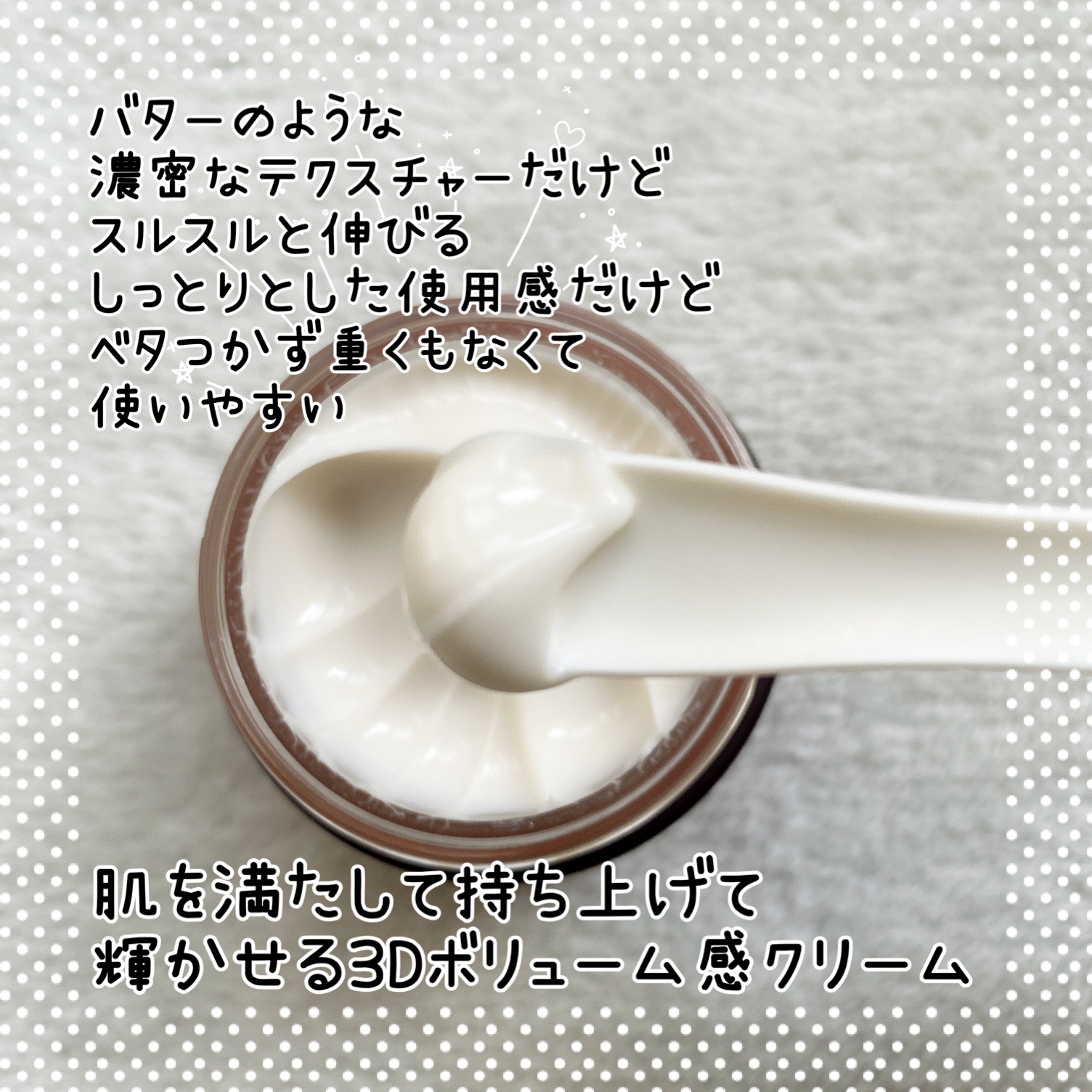 | テクスチャーはとろみのあるリッチなクリームで、肌にのせるととろけるように広がります。 | 詳細を見る | ||
