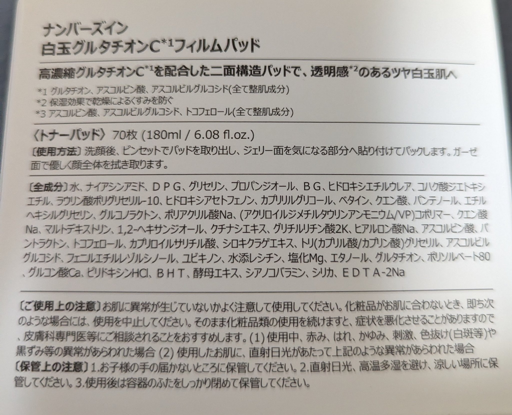 商品詳細情報numbuzin 5番 白玉グルタチオンCフィルムパッド
