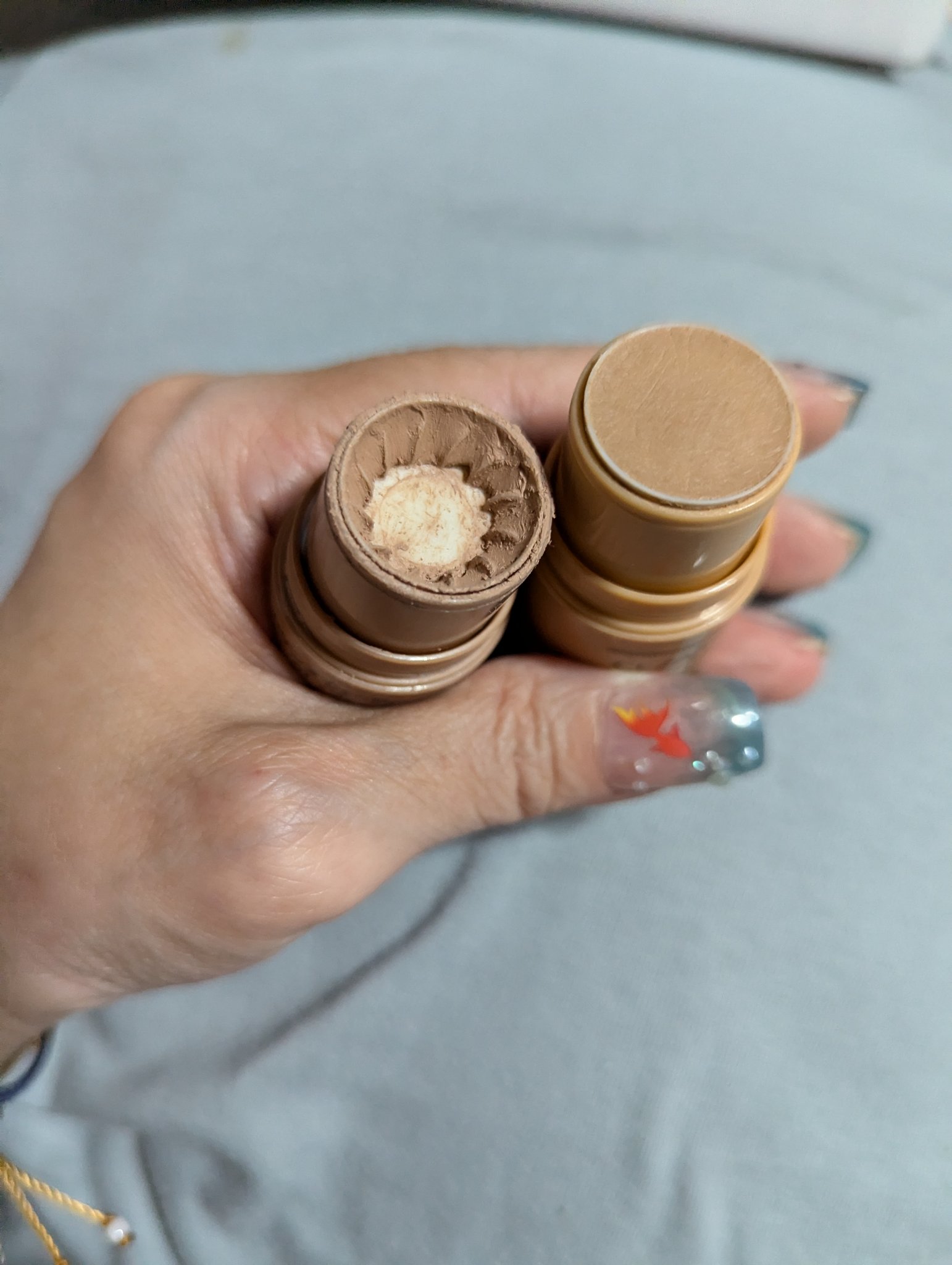 影色ブラウンで陰影を作るスティックタイプのシェーディング♪ するする塗りやすいのと太めだから均一に塗りやすいところが楽ちんポイント! なじませるとマ〜ジで影の色になってびっくり🥹 とはいえ…正面で見たときにエラを削ろうと思ったらかなり濃い目に塗る必要があり… イエベの私は「01 マットブラウン」のカラーを使ったよ。もしかしたらもう一色のほうが合うかもしれないからまた買ってみるつもり。