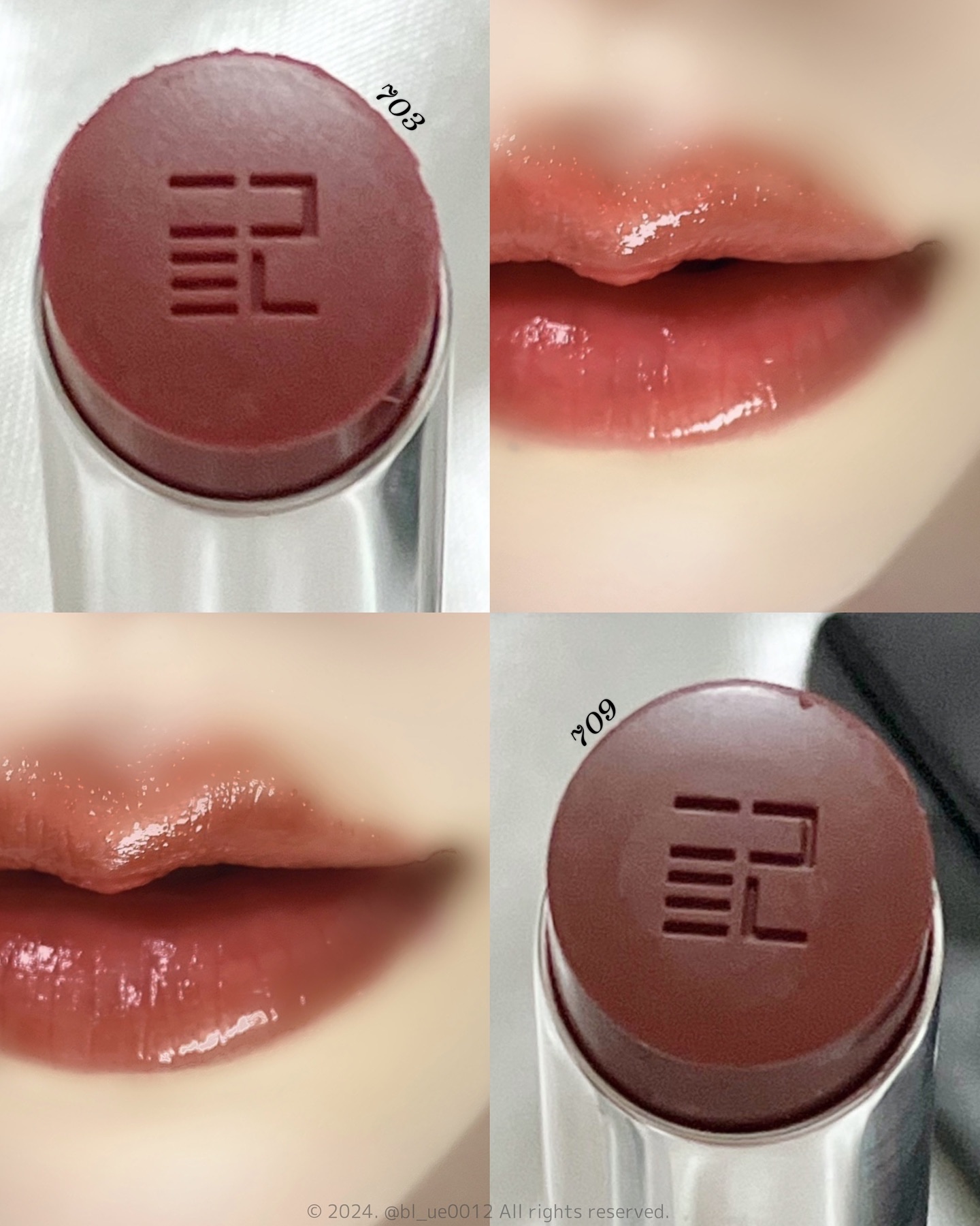 透け感がありながらもふっくらしっとり、元の唇の存在感を際立たせてくれるよ。 実際ブルベ夏のわたしも701が1番いい感じ。色んなメイクに合わせやすくて嬉しい☺️✨ 唇の縦ジワも目立ちにくいからこれは一軍入り確定だなっと思ったよ🤝💕