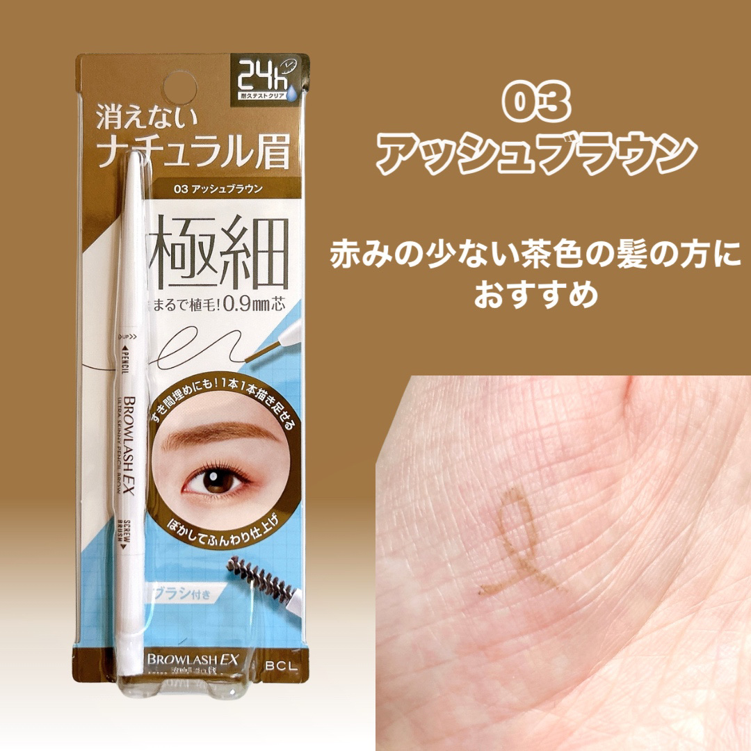 極細0.9mmペンシル 1本1本自眉のように描くことができ、繊細なラインも自然で綺麗な仕上がり。 24時間耐久テスト次クリア 汗。 皮脂•水に強いウォータープルーフ処方。 この極細芯がすごい! 細いラインかとても描きやすいよ♪
