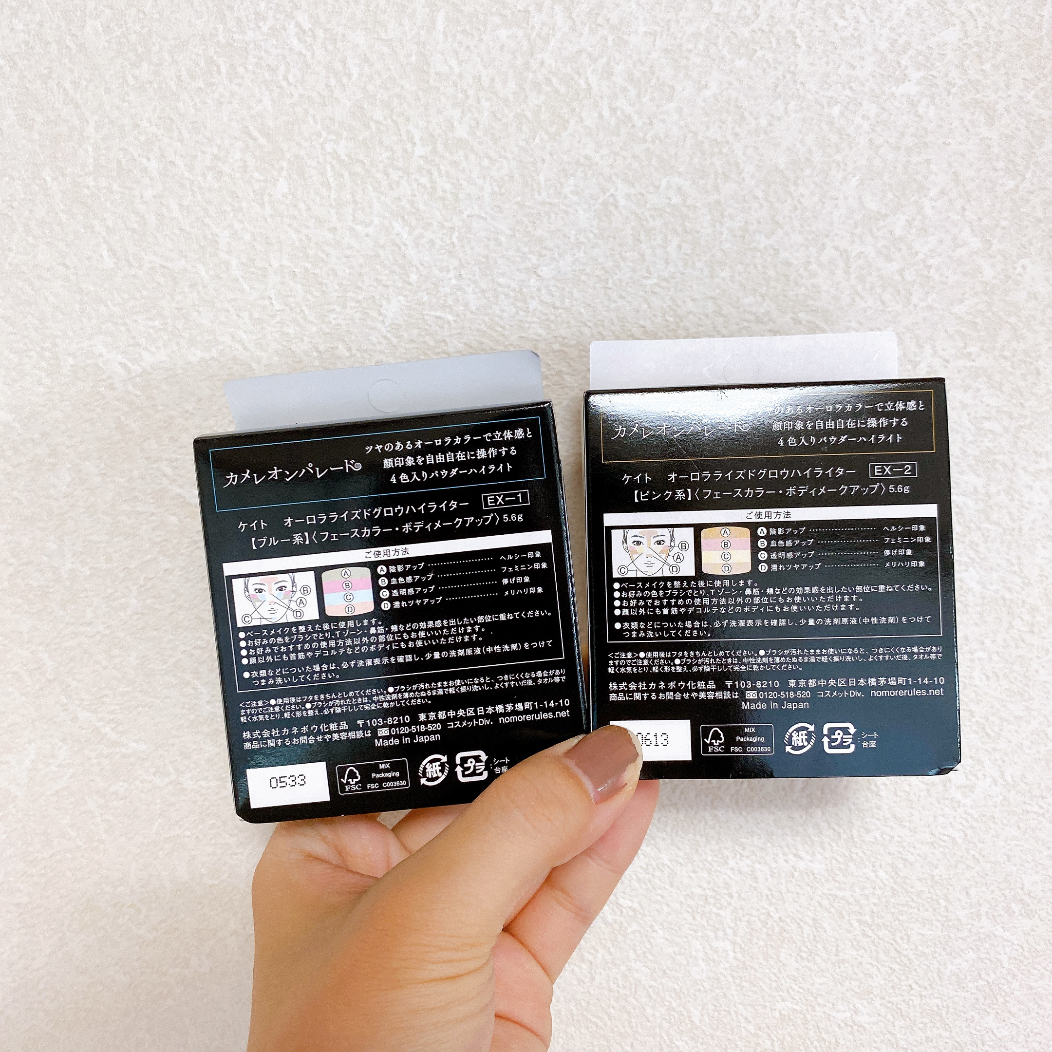 - KATE数量限定コレクション「カメレオンパレード」開幕! #カメレオンハイライト 4色のツヤのあるオーロラカラーでなりたい顔印象、変幻自在。 それぞれのパーツにツヤを足して立体感を演出するパウダーハイライト。 ■ポイント 単色使いでなりたいニュアンスを演出(ヘルシー印象・フェミニン印象・儚げ印象・メリハリ印象) 4色をブレンドして自分だけのカラーを楽しむことも 首筋やデコルテにつけてツヤ感・立体感をアップ