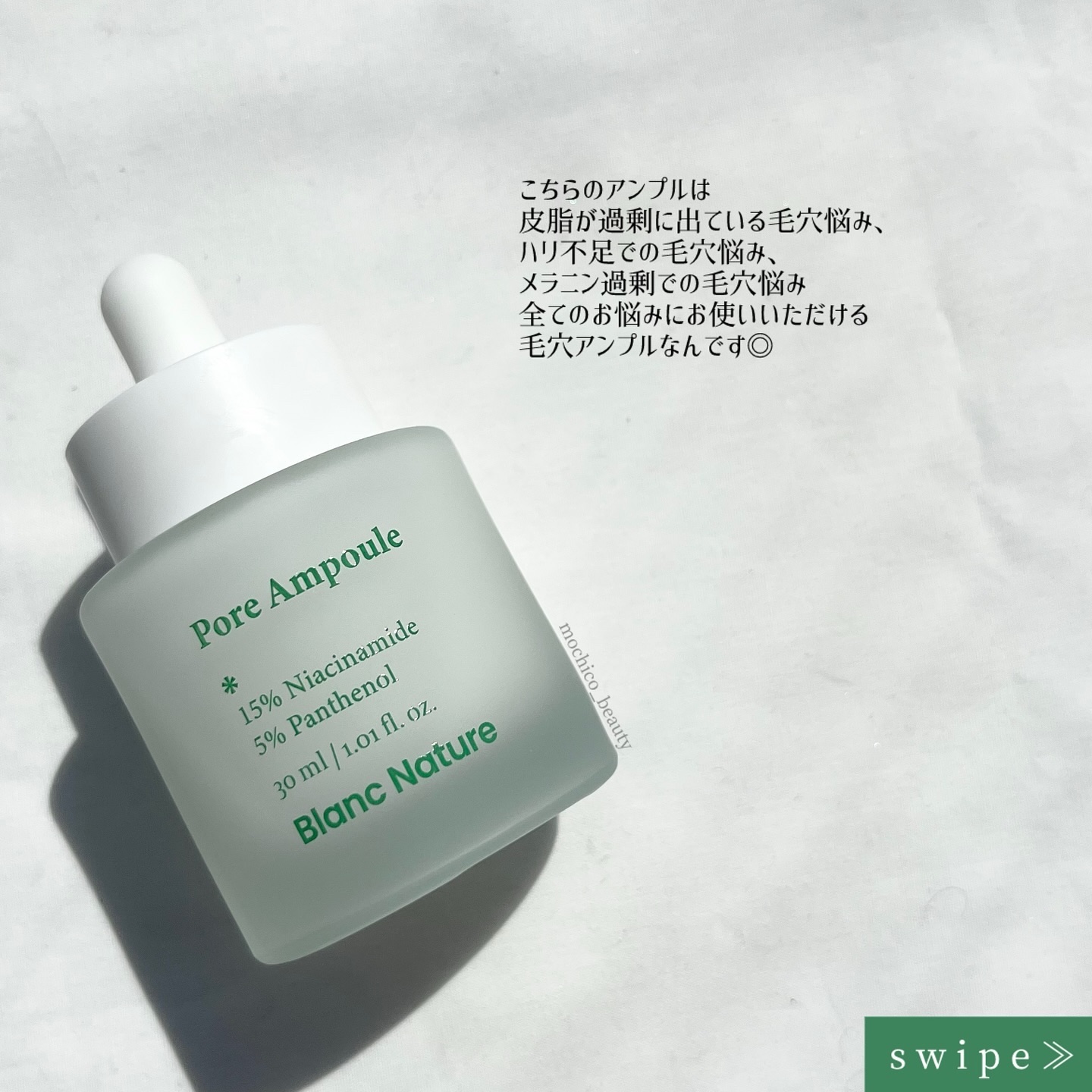 韓国のニキビ専用スキンケアブランド、BLANC(ブラン)から誕生した毛穴消しゴムアンプルを使ってみました✨ 毛穴収縮や毛穴黒ずみケア、色素沈着ケアに効果的! ナイアシンアミドが15%高濃縮配合・テカリや皮脂をさっぱりコントロールするパンテノール高配合