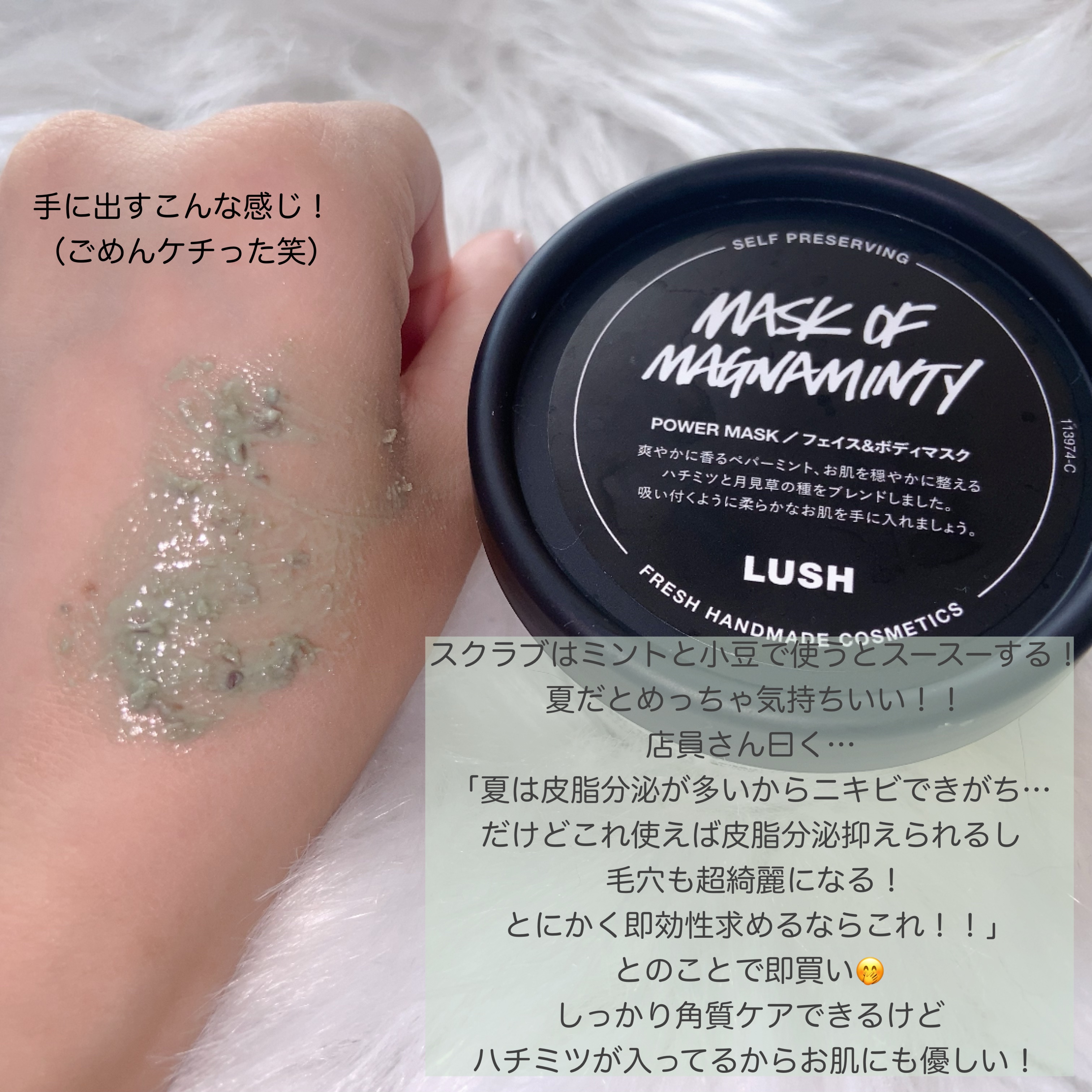 - 顔にも体にもマルチに使える、ミントが爽やかに香るナチュラルなスクラブ入りのフェイス&ボディマスクです。 ハチミツやカオリンといった、健やかなお肌作りに効果的な原材料を配合しています。余分な皮脂や古い角質をすっきり落としたい方に。 なめらかでお肌にのばしやすい質感です。清涼感をもたらすペパーミントオイルと、健やかな状態に整えるマリーゴールドオイルをブレンド。さらに、月見草の種子とアズキ豆がスクラブとなって古い角質を取り除き、ミネラルを豊富に含むカオリンが余分な皮脂や汚れを吸着します。すすぎ流した後、お肌にもっちりとした潤い感が残っているのはハチミツが持つ働きのおかげです。 『パワーマスク SP』は自然由来のクレイの中に水、ハチミツ、グリセリンを分散させ、微生物の増殖に必要となる水分を吸水性の高い原材料の内部に隠すことで、合成保存料に頼らずに商品の保存効果を高めた「セルフプリザービング処方」。濃厚な質感が特徴です。