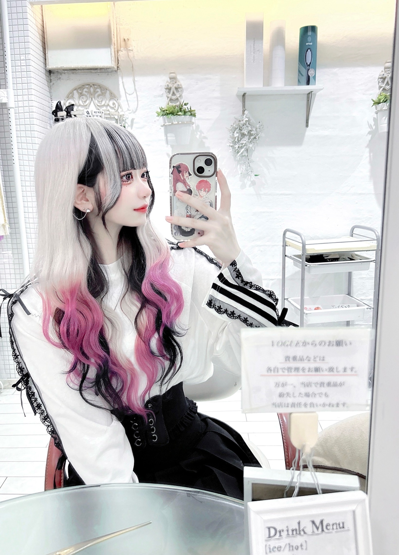 紫×白(グレー寄り)です!!ハーフアップとかにして紫が全面に出るとちょっとキツめの印象になってしまうので、お下げやストレートで下ろしてゴールドのヘアピンつけたりしてます✨ ダイアンのパーフェクトビューティ モイストダイアン エクストラダメージリペア シャンプー/トリートメントを使っています! 過去にブリーチ6回してる私が実際にしているヘアケアを紹介しているので、よければ固定投稿を見て頂けると嬉しいです!