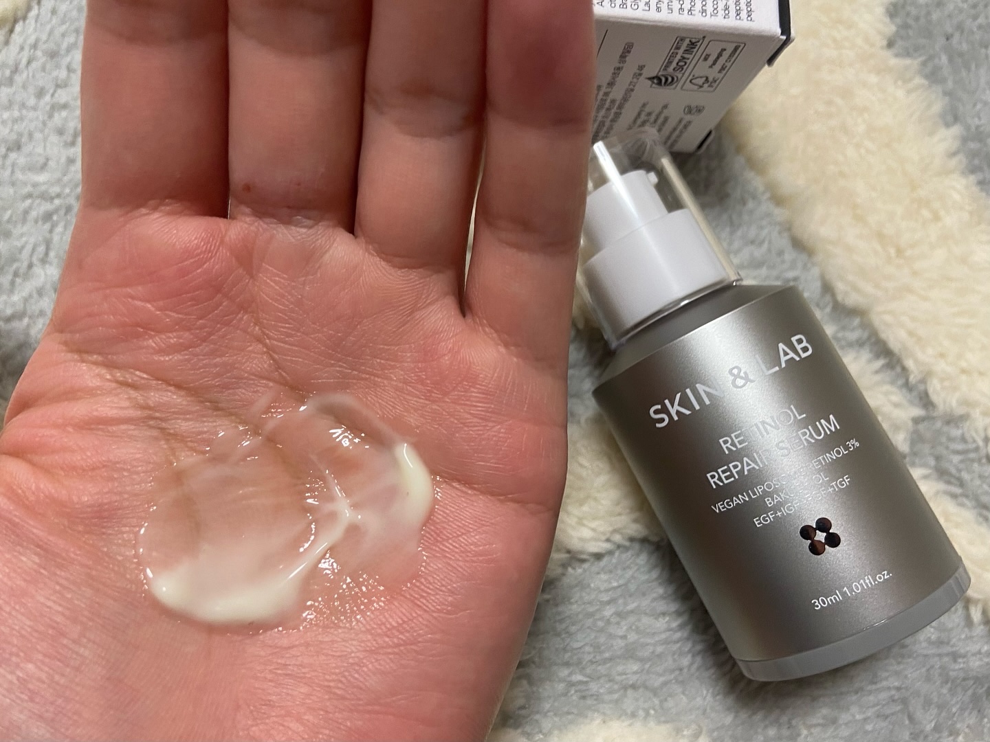 低刺激で使いやすいレチノールセラム! 光と熱に不安定なレチノールをリポソーム化して安定させた、ヴィーガンリポソームレチノール。 刺激を減らしたヴィーガンレチノール3% →刺激を減らしたヴィーガンレチノール エアレスポンプなのも嬉しいポイント𖤐 ̖́-