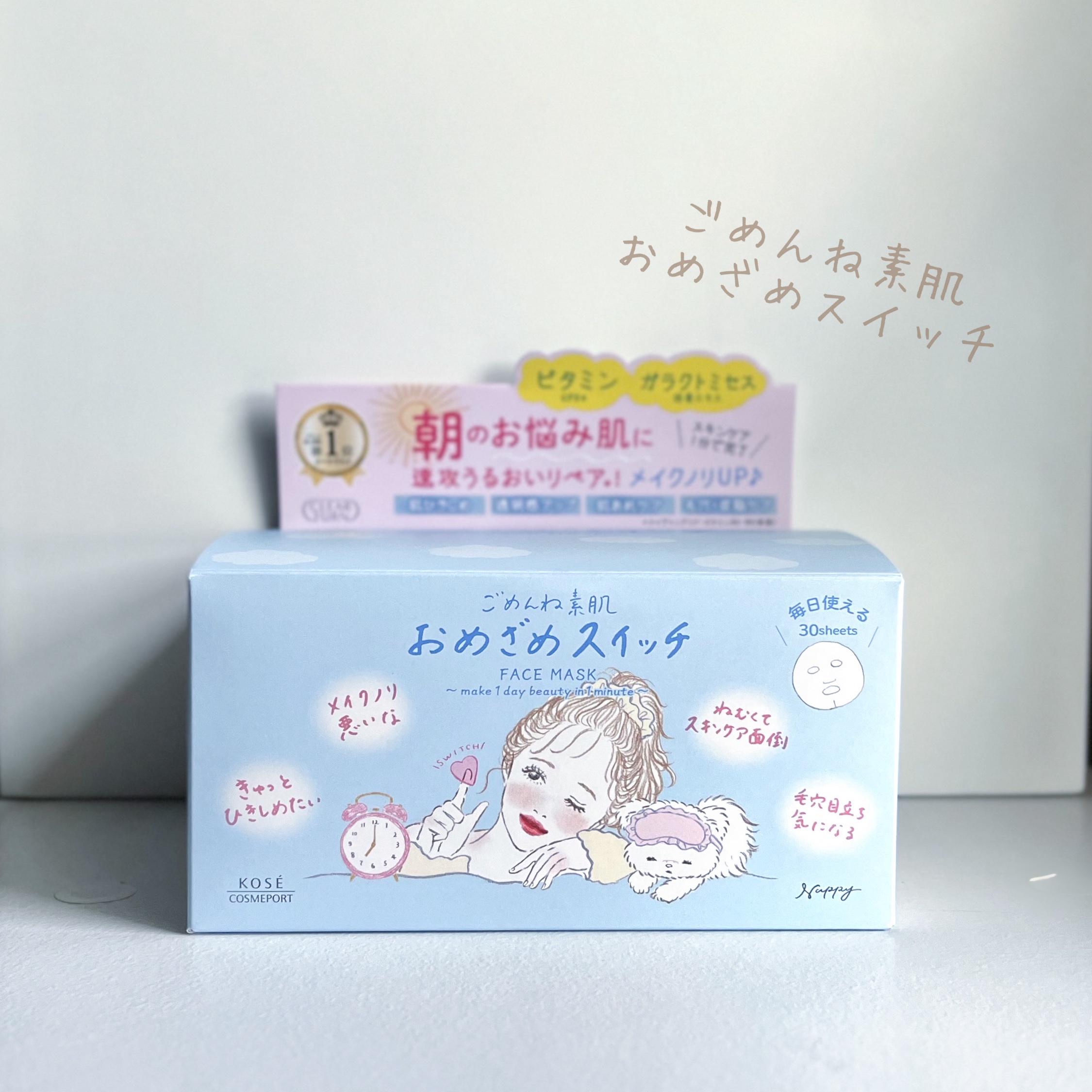 - 朝のお悩み肌も速攻ケアできる 『おめざめスイッチマスク』 ①1分の集中ケアで、朝のおなやみ肌も速攻ケア。メイクノリUP ひんやりした使い心地で、寝起きの肌をシャキッとひきしめ! みずみすしくべたつかないから、すぐにメイクができ、長時間キレイな肌つづきます。 ②あれがちな肌にも使いやすい低刺激設計 弱酸性・無香料・無着色・無鉱物油・アルコールフリー・パラベンフリー・紫外線吸収剤フリー・シリコーンフリーの低刺激処方。やさしい使い心地です。