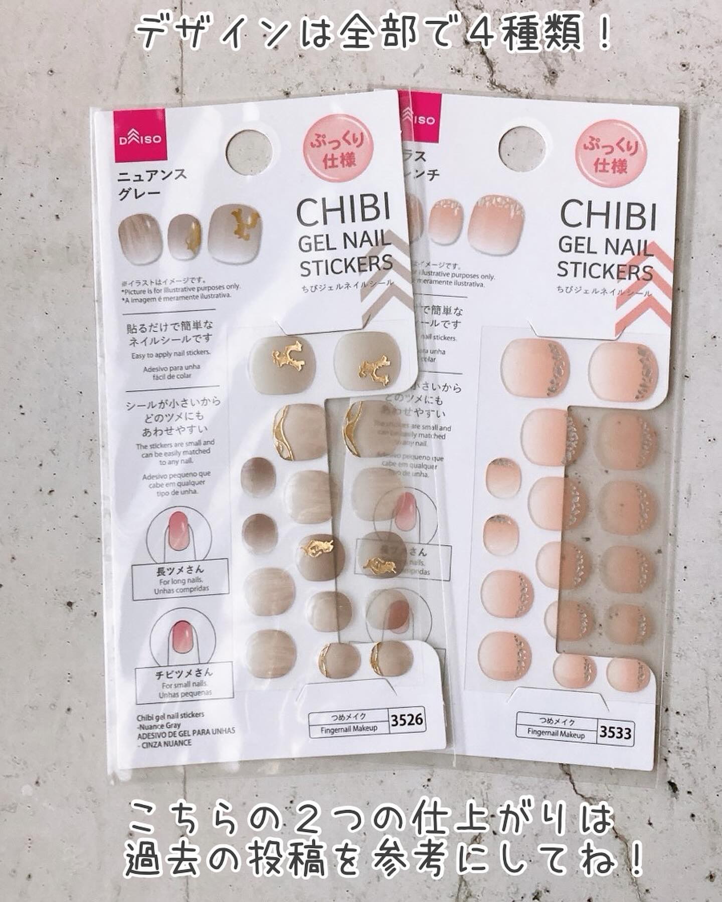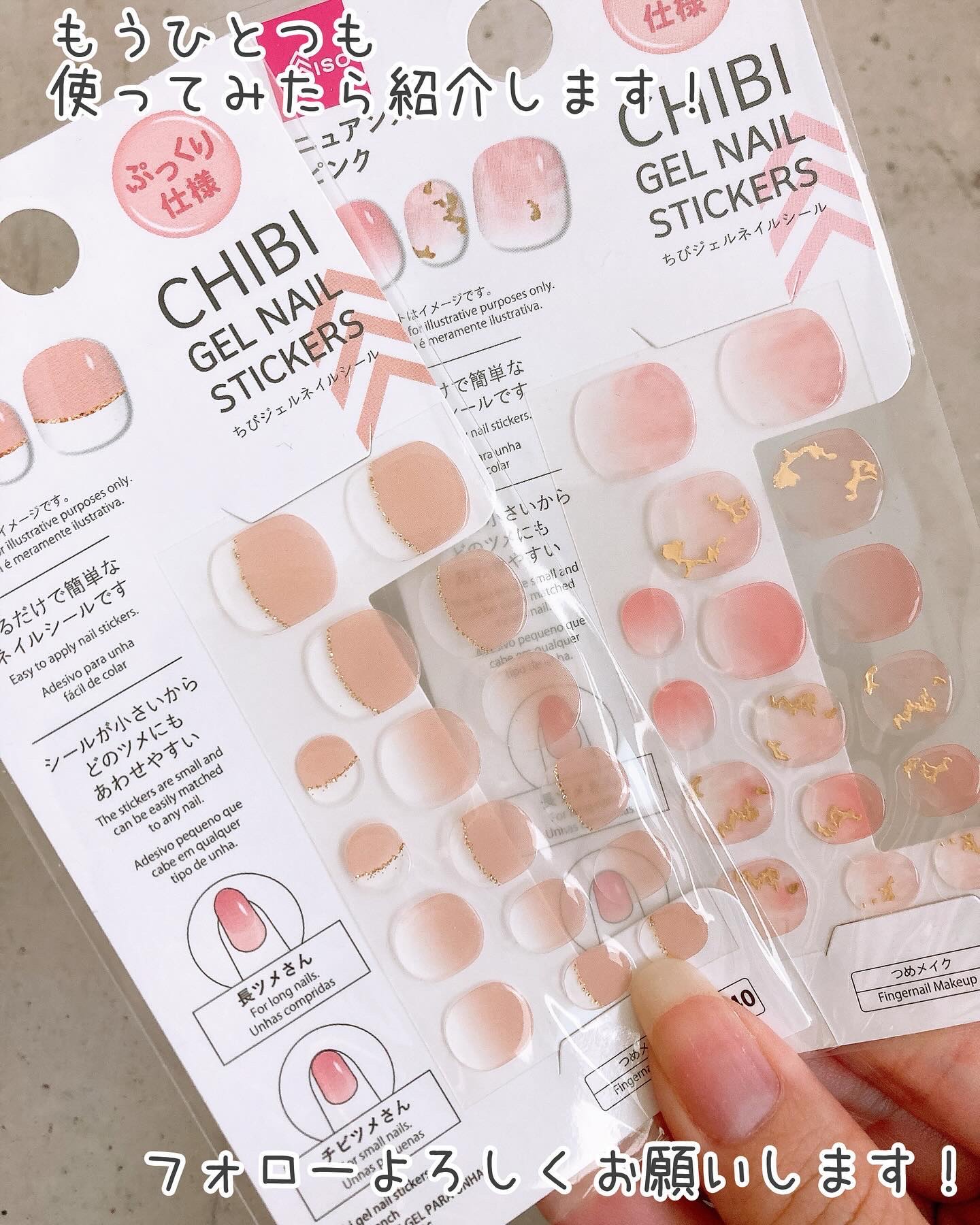 爪が短いので普通のネイルシールだとかなり切らなきゃいけないのと、爪先にデザインがあるものだと下手したら見えない私🫥 全く切らなくて良いから楽でした♫ 以前貼ったフットジェルネイルシールは(もう3週間以上前かな)いまだに全部剥がれずついてるけど、指はどうかな?(笑) 気軽にできるし、110円だからおすすめです🥰