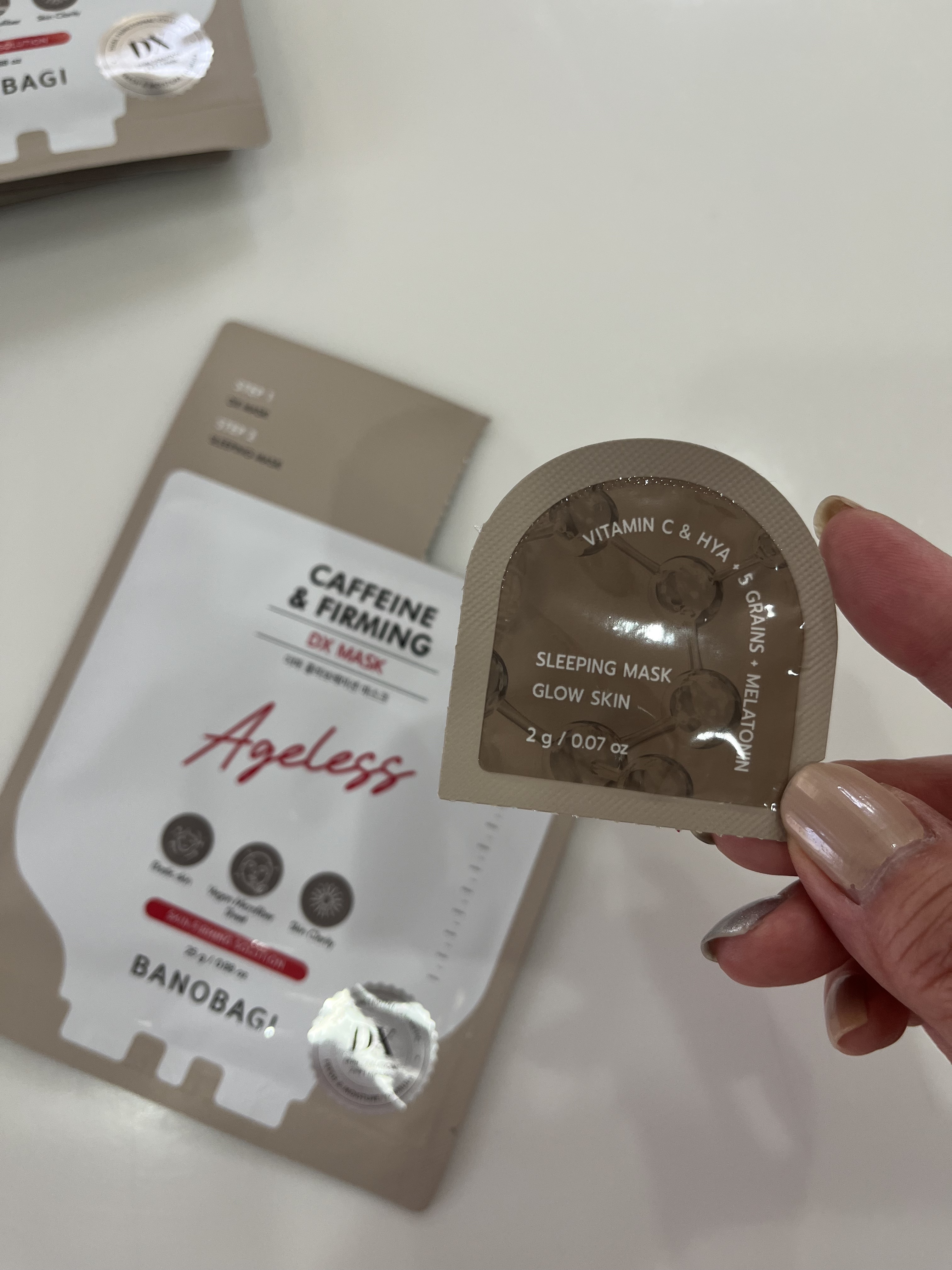BANOBAGI DXマスク ブライト&ヤング☘️クリーム(スリーピングマスク)付きなので、これひとつで手軽にスキンケア完了☘️くすんだ肌にムードあるツヤをだしてトーンアップ☘️髪の毛の1/100の細さの極細マイクロセルシート使い方1.洗顔後...