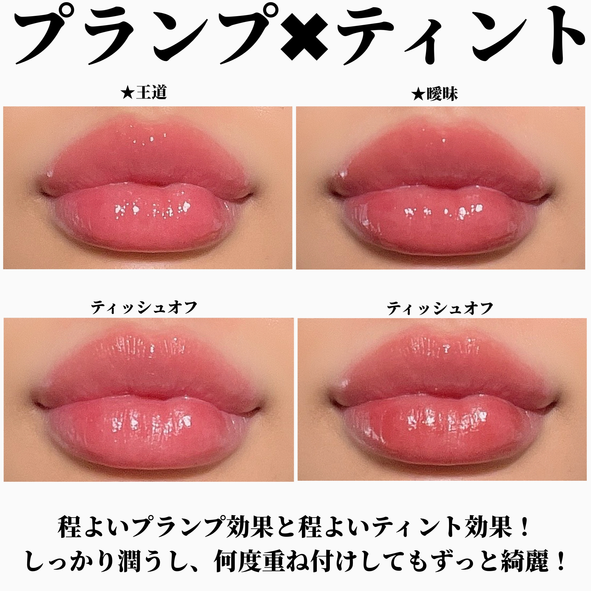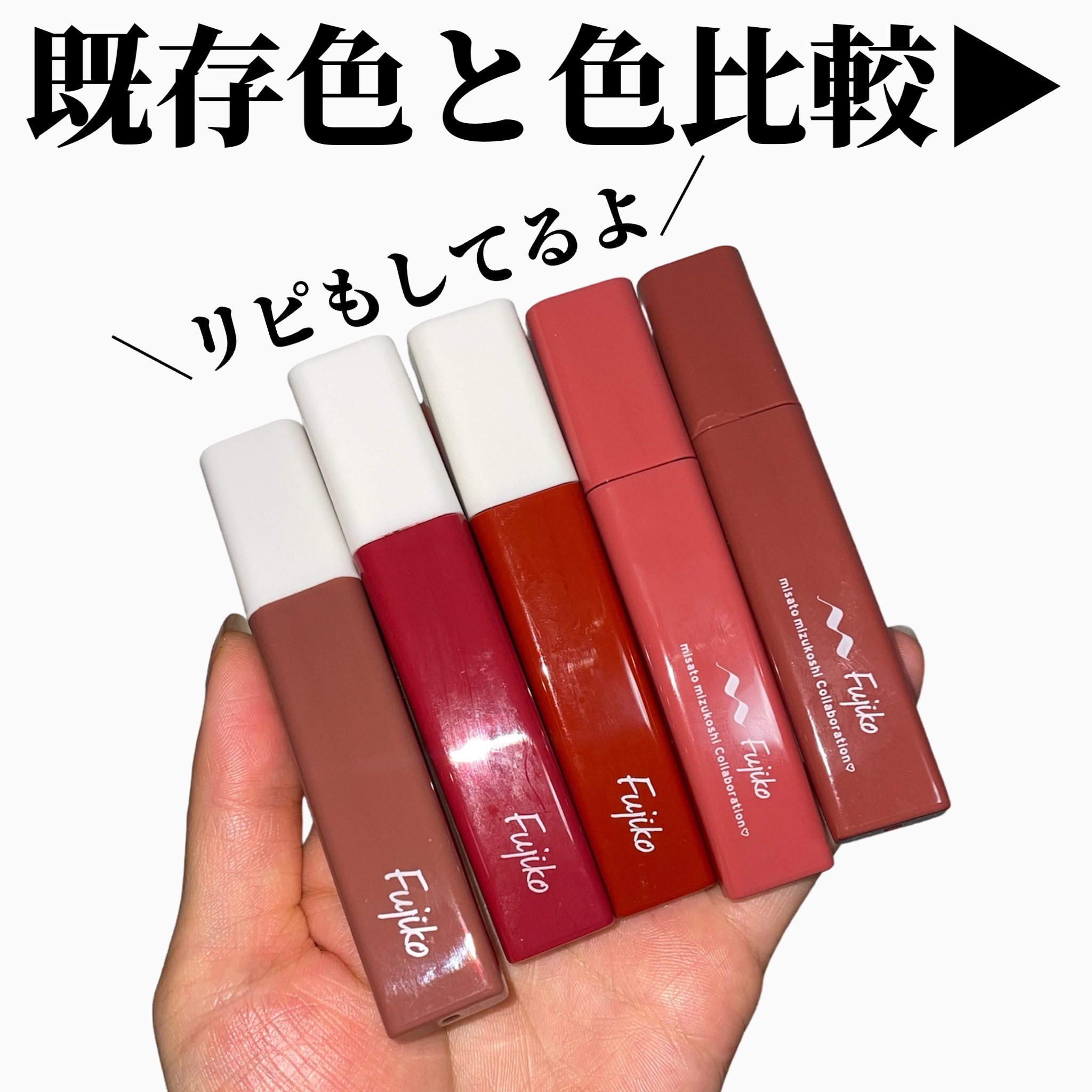 #fujiko#プランピーリップ#甘美#水越みさと限定カラー#王道#曖昧珍しくスウォッチした!(えらい)上から、甘美・王道・曖昧です。2枚目は普通に塗った時の発色、3枚目はティッシュで拭き取った時の色残りです。私が崇拝している水越みさと様のベ...