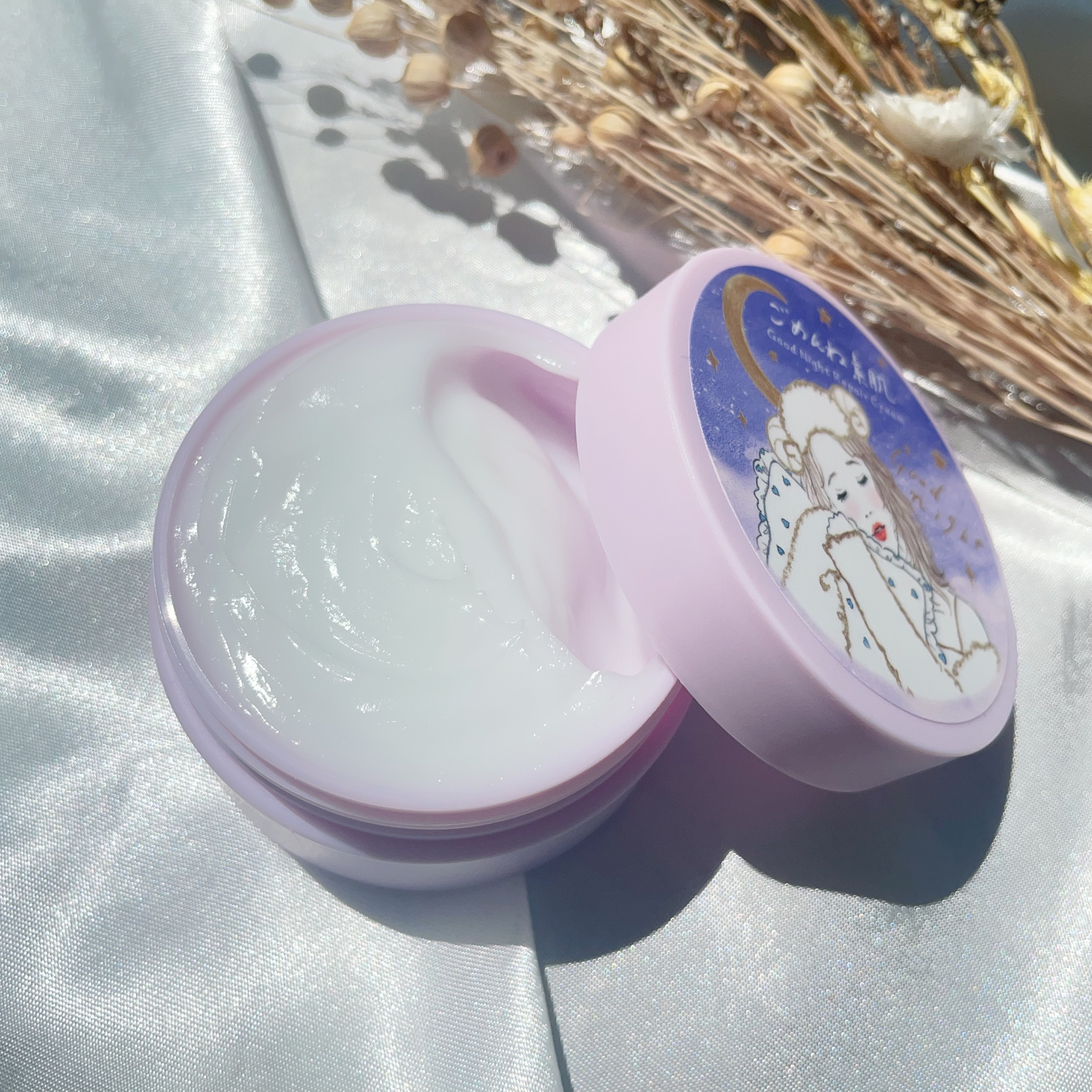 女の子のパケが可愛すぎ🤍 寝ている間に日中受けたダメージ*を集中リペア。 テクスチャーはけっこう固め。 シアバターのようにとろけて肌になじむ感じ。 乾燥しやすい季節にぴったり! あれがちな肌にも使いやすい低刺激設計(弱酸性・無香料・紫外線吸収剤フリー・無着色・アルコールフリー)なのも嬉しい✨