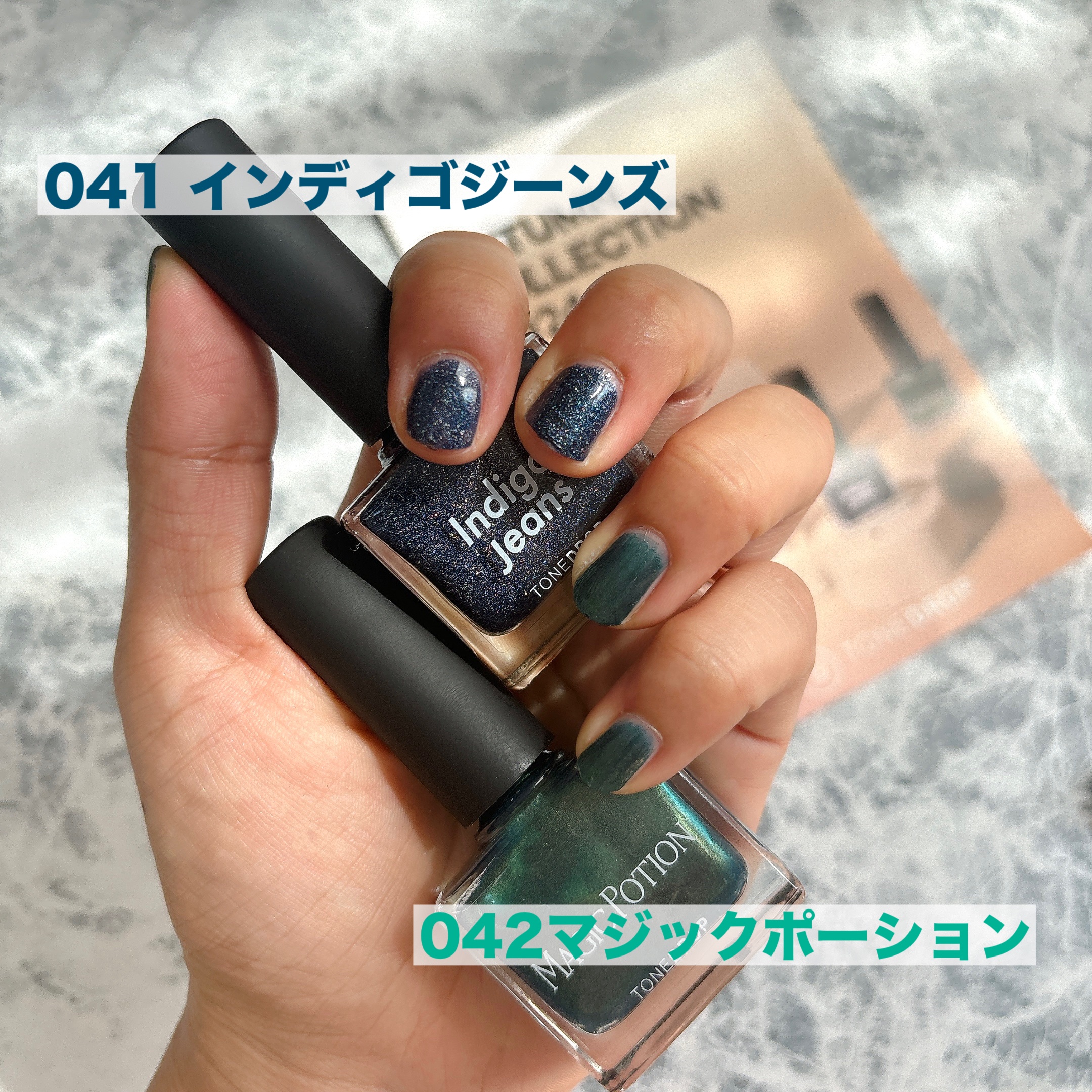 偏光ラメが輝く、深みのあるインディゴブルー 魅惑のオーラを放つピーコックグリーン 繊細なゴールドのきらめきを抱えたメルティブラウン フラッシュのように眩いベージュゴールド
