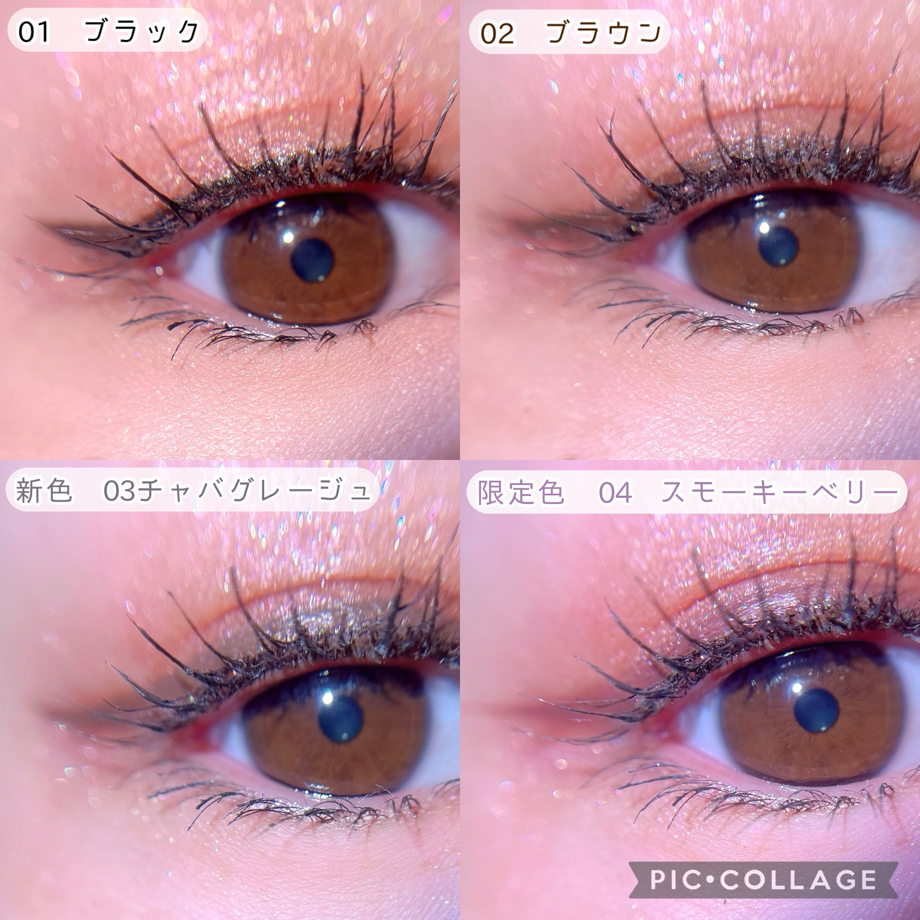 ウォータープルーフ・美容液成分配合 ¥990(税込) しっかり目元を引き締める黒 ブラックで細いラインが描きたい方におすすめ 強調と抜け感を両立するグレージュ ピンク、オレンジ、ブラウン、どの色にも合わせやすそうな色かなと思いました。