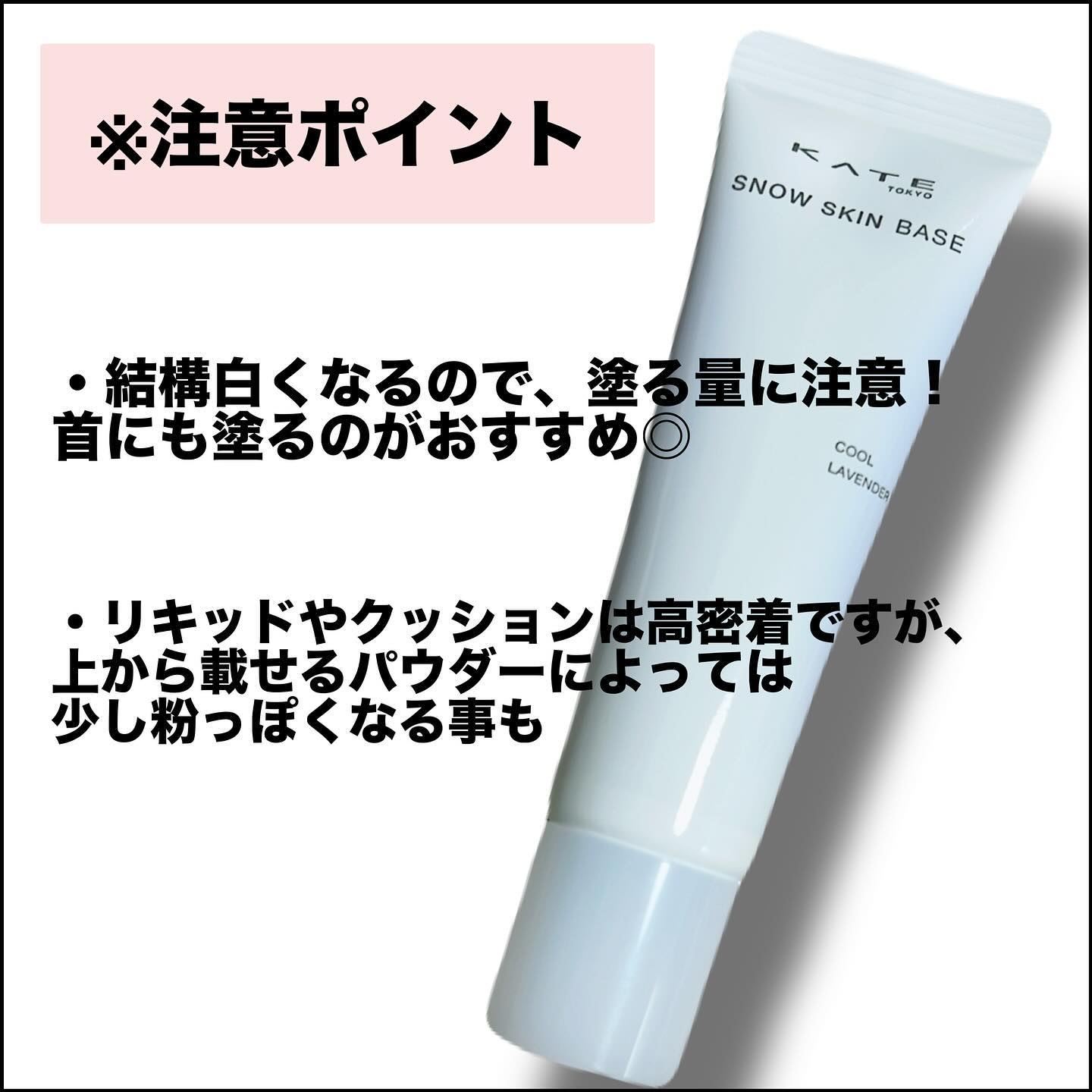 KATE独自のスノースキンフィット技術で、高補整(毛穴&色ムラ・くすみをカバー)することで、白光トーンアップ 高い補整力で毛穴・色ムラ・凹凸を綺麗にカバーしてトーンアップ肌になれるのも嬉しい 光の効果で補正してくれ、ツヤのある肌に* お休みの日などは、これ1つで過ごしているほどお気に入りのベースです