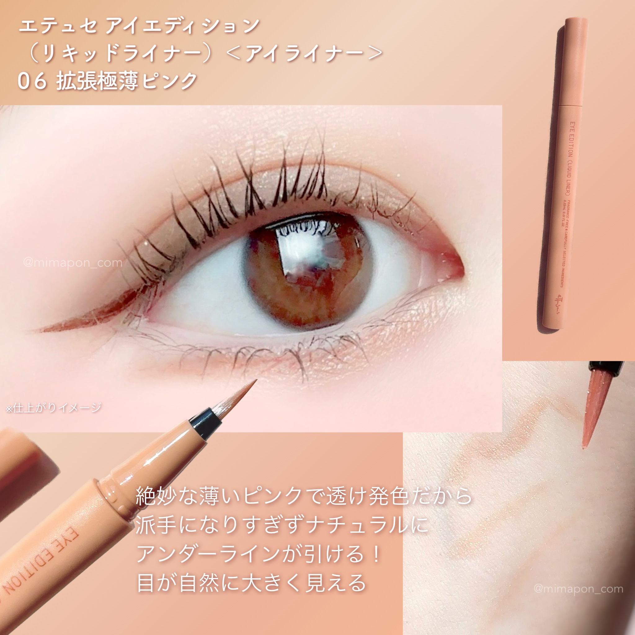 ブルベ・イエベ問わずになじむ、ニュートラルなベージュカラーで使いやすい😍😍😍 パールが絶妙でツヤのある眼差しに😍 涙袋作りにピッタリの極薄ライナー✨ 自然に目の縦幅を拡張、中顔面が短縮* 粘膜のような絶妙なサーモンピンクベージュカラー🫶💗 価格も手頃で手に入れやすいし💡⠜ 気になる方はぜひチェックしてみて!!