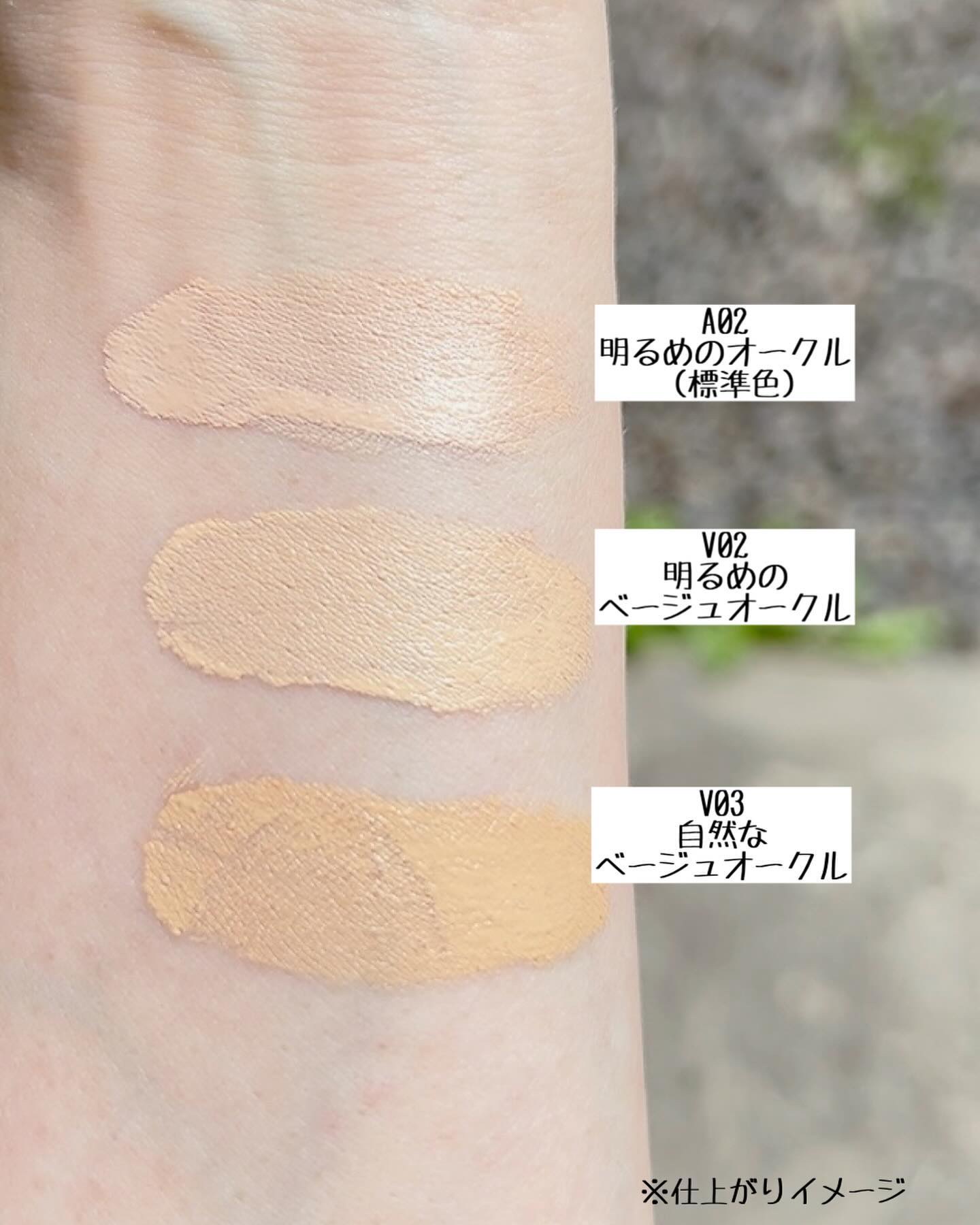 - <A02 明るいオークル(標準色)> 水、酸化チタン、メチルトリメチコン、シクロペンタシロキサン、メトキシケイヒ酸エチルヘキシル、カプリリルメチコン、PEG-10ジメチコン、プロパンジオール、フェニルベンズイミダゾールスルホン酸、トリメチルシロキシケイ酸、ポリメタクリル酸メチル、シクロヘキサシロキサン、ナイアシンアミド、合成フルオロフロゴパイト、トロメタミン、ナイロン-12、酸化鉄、1,2-ヘキサンジオール、ラウリルPEG-9ポリジメチルシロキシエチルジメチコン、ジステアルジモニウムヘクトライト、パンテノール、塩化Na、ステアリン酸亜鉛、水酸化Al、ニンフェアケルレア花水、ポリプロピルシルセスキオキサン、ステアリン酸、(アクリレーツ/アクリル酸エチルヘキシル/メタクリル酸ジメチコン)コポリマー、ジステアリルジモニウムクロリド、パルミトイルプロリン、(アクリレーツ/ジメチコン)コポリマー、パルミチン酸、香料、パルミトイルグルタミン酸Mg、パルミトイルサルコシンNa、ミリスチン酸Al、アデノシン、トリエトキシカプリリルシラン、スクワラン、トコフェロール、クレアチン、尿素、フルクトース、グルコース、アラニン、トレオニン、グリシン、グルタミン、ヒスチジン、グルタミン酸、塩化Ca、アスパラギン、塩化Mg、ウシ血清アルブミン <V02 明るいベージュオークル> 水、酸化チタン、メチルトリメチコン、シクロペンタシロキサン、メトキシケイヒ酸エチルヘキシル、カプリリルメチコン、PEG-10ジメチコン、プロパンジオール、フェニルベンズイミダゾールスルホン酸、トリメチルシロキシケイ酸、ポリメタクリル酸メチル、シクロヘキサシロキサン、ナイアシンアミド、合成フルオロフロゴパイト、トロメタミン、ナイロン-12、酸化鉄、1,2-ヘキサンジオール、ラウリルPEG-9ポリジメチルシロキシエチルジメチコン、ジステアルジモニウムヘクトライト、パンテノール、塩化Na、ステアリン酸亜鉛、水酸化Al、ニンフェアケルレア花水、ポリプロピルシルセスキオキサン、ステアリン酸、(アクリレーツ/アクリル酸エチルヘキシル/メタクリル酸ジメチコン)コポリマー、ジステアリルジモニウムクロリド、パルミトイルプロリン、(アクリレーツ/ジメチコン)コポリマー、パルミチン酸、香料、パルミトイルグルタミン酸Mg、パルミトイルサルコシンNa、ミリスチン酸Al、アデノシン、トリエトキシカプリリルシラン、スクワラン、トコフェロール、クレアチン、尿素、フルクトース、グルコース、アラニン、トレオニン、グリシン、グルタミン、ヒスチジン、グルタミン酸、塩化Ca、アスパラギン、塩化Mg、ウシ血清アルブミン <V03 自然なベージュオークル> 水、酸化チタン、メチルトリメチコン、シクロペンタシロキサン、メトキシケイヒ酸エチルヘキシル、カプリリルメチコン、PEG-10ジメチコン、プロパンジオール、フェニルベンズイミダゾールスルホン酸、トリメチルシロキシケイ酸、ポリメタクリル酸メチル、シクロヘキサシロキサン、ナイアシンアミド、合成フルオロフロゴパイト、トロメタミン、ナイロン-12、酸化鉄、1,2-ヘキサンジオール、ラウリルPEG-9ポリジメチルシロキシエチルジメチコン、ジステアルジモニウムヘクトライト、パンテノール、塩化Na、ステアリン酸亜鉛、水酸化Al、ニンフェアケルレア花水、ポリプロピルシルセスキオキサン、ステアリン酸、(アクリレーツ/アクリル酸エチルヘキシル/メタクリル酸ジメチコン)コポリマー、ジステアリルジモニウムクロリド、パルミトイルプロリン、(アクリレーツ/ジメチコン)コポリマー、パルミチン酸、香料、パルミトイルグルタミン酸Mg、パルミトイルサルコシンNa、ミリスチン酸Al、アデノシン、トリエトキシカプリリルシラン、スクワラン、トコフェロール、クレアチン、尿素、フルクトース、グルコース、アラニン、トレオニン、グリシン、グルタミン、ヒスチジン、グルタミン酸、塩化Ca、アスパラギン、塩化Mg、ウシ血清アルブミン