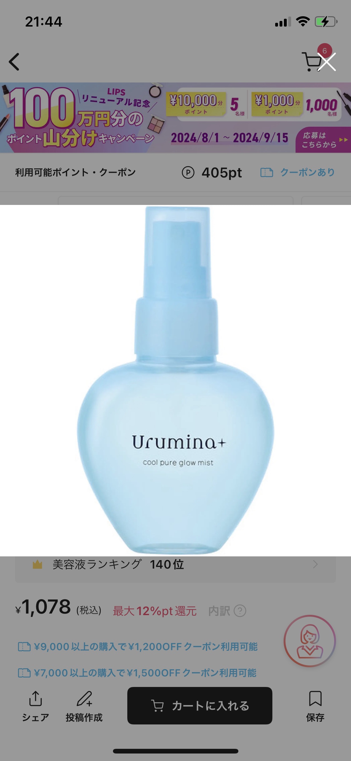 ウルミナプラス 生つやキープミスト | 1,078円 |
