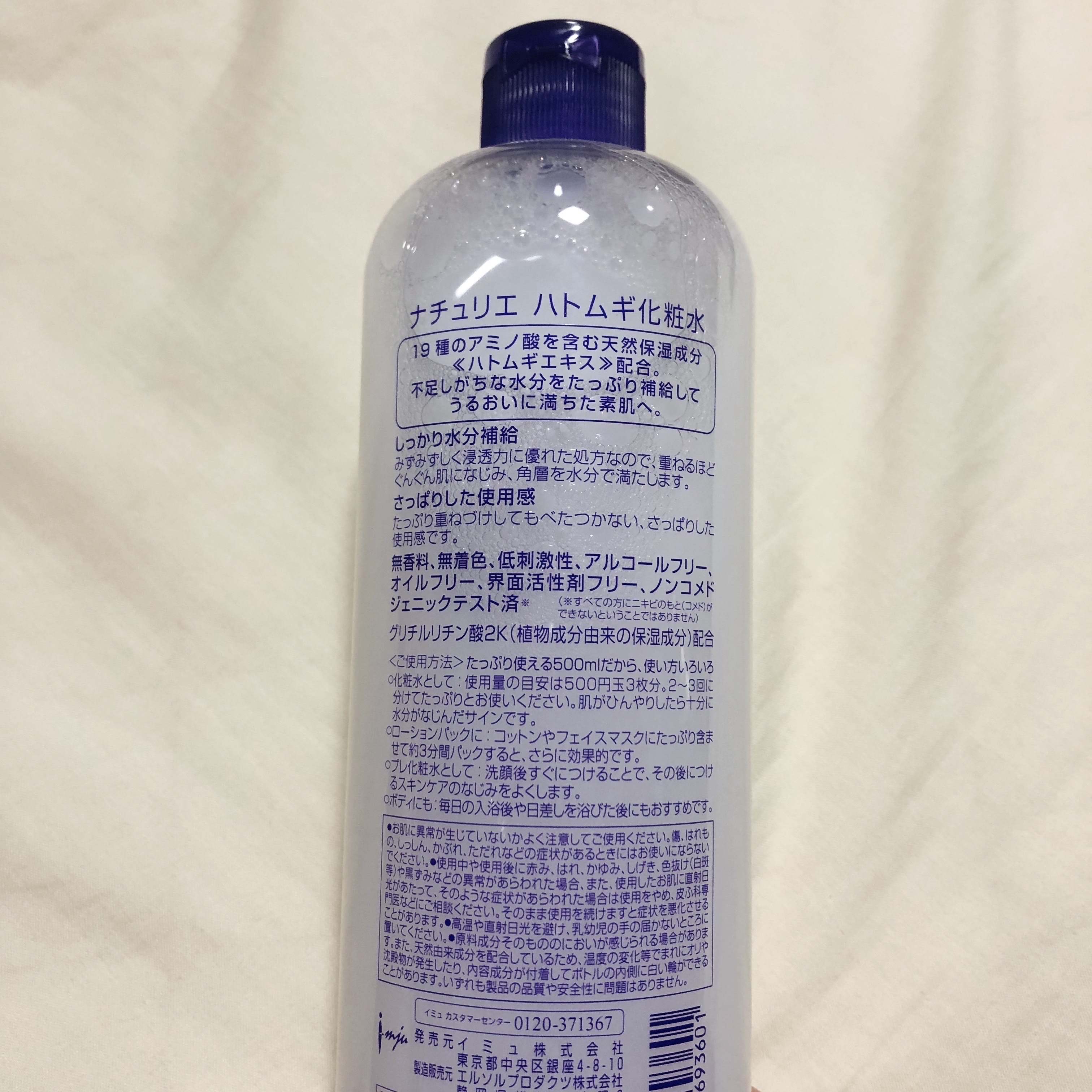 - <通常サイズ 500ml> 水、DPG、BG、グリセリン、ハトムギエキス、グリチルリチン酸2K、(スチレン/VP)コポリマー、クエン酸、クエン酸Na、メチルパラベン <500ml+ 限定ムーミンデザインボトル> 水、DPG、BG、グリセリン、ハトムギエキス、グリチルリチン酸2K、(スチレン/VP)コポリマー、クエン酸、クエン酸Na、メチルパラベン <詰め替えタイプ 480ml> 水、DPG、BG、グリセリン、ハトムギエキス、グリチルリチン酸2K、(スチレン/VP)コポリマー、クエン酸、クエン酸Na、メチルパラベン <旧製品> BG、グリセリン、メチルパラベン、エタノール、グリチルリチン酸2K、ハトムギエキス、DPG、クエン酸Na、プロピルパラベン、クエン酸、(スチレン/アクリレーツ)コポリマー、水 <限定ムーミンデザイン> 水、DPG、BG、グリセリン、ハトムギエキス、グリチルリチン酸2K、(スチレン/VP)コポリマー、クエン酸、クエン酸Na、メチルパラベン