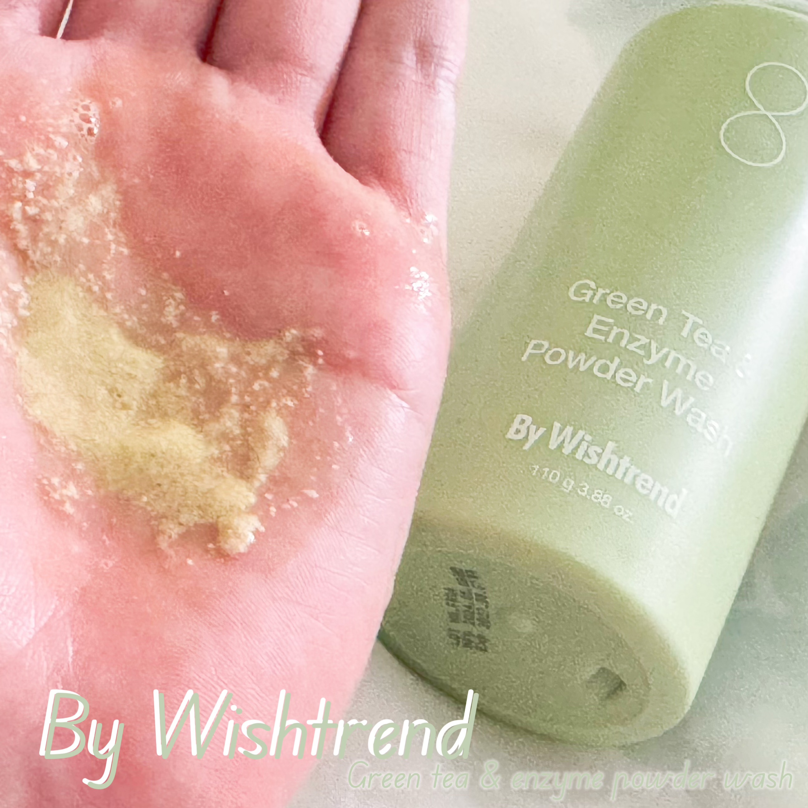さらさらとした細かなパウダーで水を少しずつ加えながら泡立てていきます🫧 ふわふわ、もちもちとした泡でやさしく洗い上げてくれます🧜♀️ 泡切れよくややさっぱりとした使い心地🌷 ふんわりとしたお茶の香りです🍵