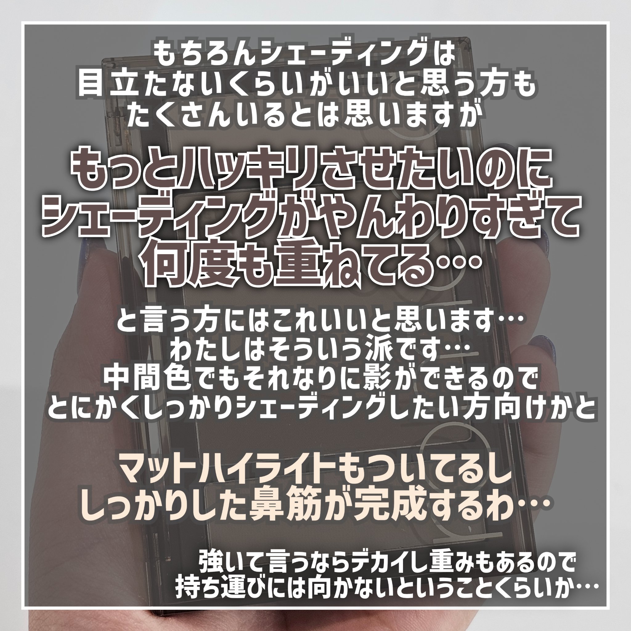 | ハイライト・シェーディングランキング第21位 | 「透け影」で平たい族の私の顔に自然な立体感が出るシャドウオンフェースはもう手放せない…! | 詳細を見る | |