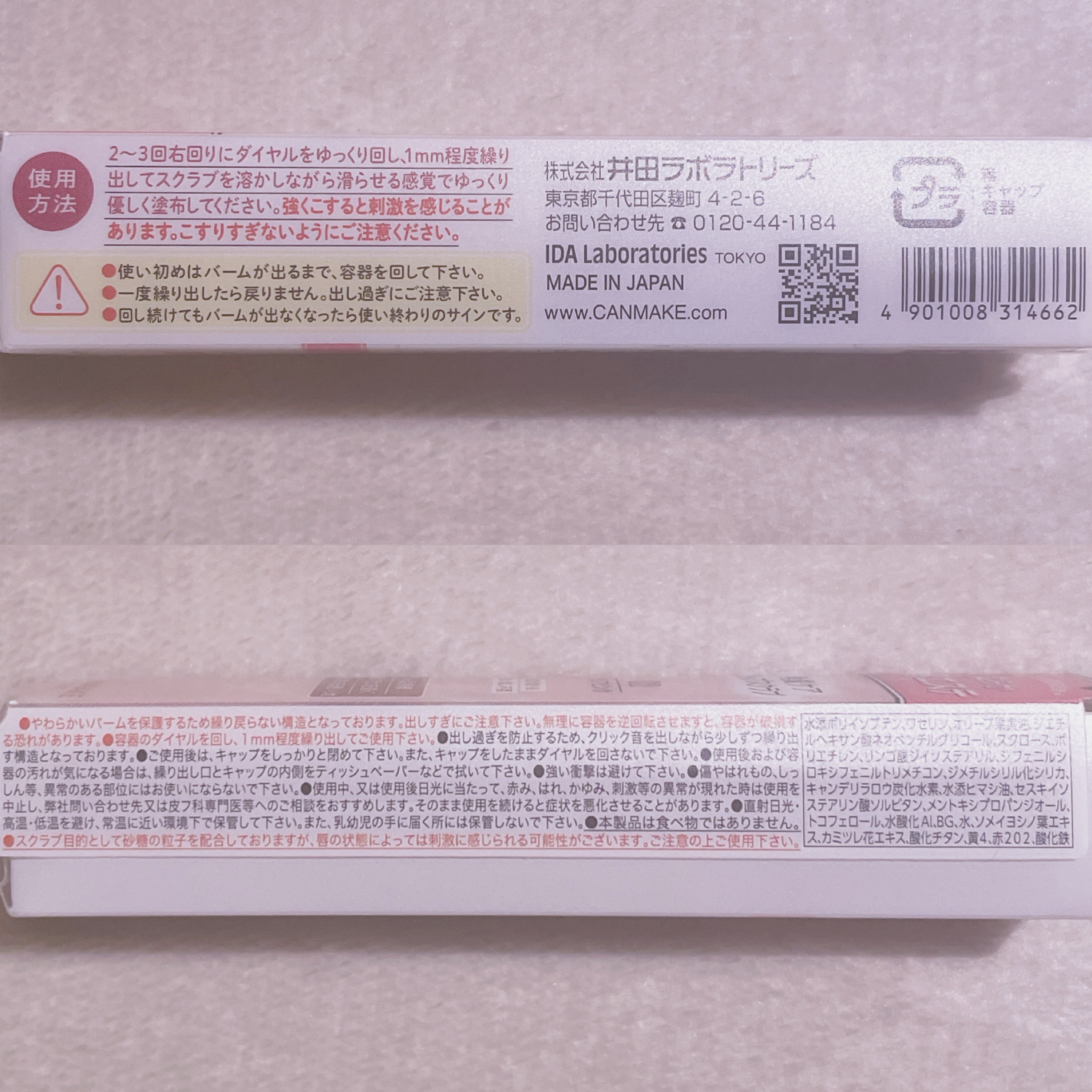 - <01 クリア> 水添ポリイソブテン、ワセリン、オリーブ果実油、ジエチルヘキサン酸ネオペンチルグリコール、スクロース、ポリエチレン、リンゴ酸ジイソステアリル、ジフェニルシロキシフェニルトリメチコン、ジメチルシリル化シリカ、キャンデリラロウ炭化水素、水添ヒマシ油、セスキイソステアリン酸ソルビタン、メントキシプロパンジオール、BG、水、ソメイヨシノ葉エキス、カミツレ花エキス <02 クリアピンク> 水添ポリイソブテン、ワセリン、オリーブ果実油、ジエチルヘキサン酸ネオペンチルグリコール、スクロース、ポリエチレン、リンゴ酸ジイソステアリル、ジフェニルシロキシフェニルトリメチコン、ジメチルシリル化シリカ、キャンデリラロウ炭化水素、水添ヒマシ油、セスキイソステアリン酸ソルビタン、メントキシプロパンジオール、トコフェロール、水酸化Al、BG、水、ソメイヨシノ葉エキス、カミツレ花エキス、酸化チタン、黄4、赤202、酸化鉄 <03 みかんイエロー> 水添ポリイソブテン、ワセリン、オリーブ果実油、ジエチルヘキサン酸ネオペンチルグリコール、スクロース、ポリエチレン、リンゴ酸ジイソステアリル、ジフェニルシロキシフェニルトリメチコン、ジメチルシリル化シリカ、キャンデリラロウ炭化水素、水添ヒマシ油、セスキイソステアリン酸ソルビタン、メントキシプロパンジオール、トコフェロール、BG、水、ソメイヨシノ葉エキス、カミツレ花エキス、黄4、赤202、酸化鉄