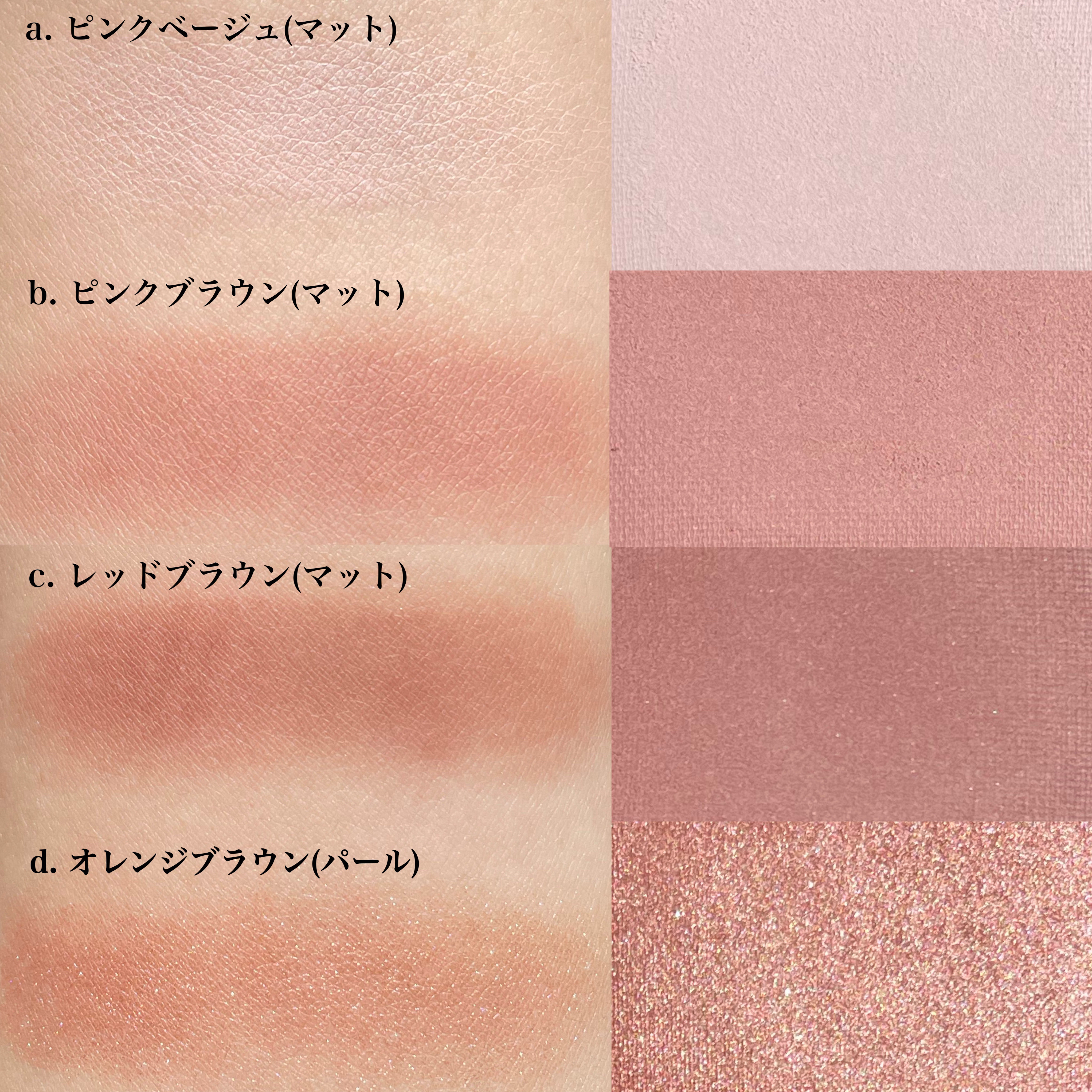 リニューアル前のものです。 自分の記録用に 高発色、アイシャドウに使っても可愛い 微細なゴールドパールで血色感のある印象に ゴールドパールが散りばめられたオレンジベージュでヘルシーな印象に どんなシーンにも使いやすい万能カラー マットで柔らかな発色、肌馴染みバツグン