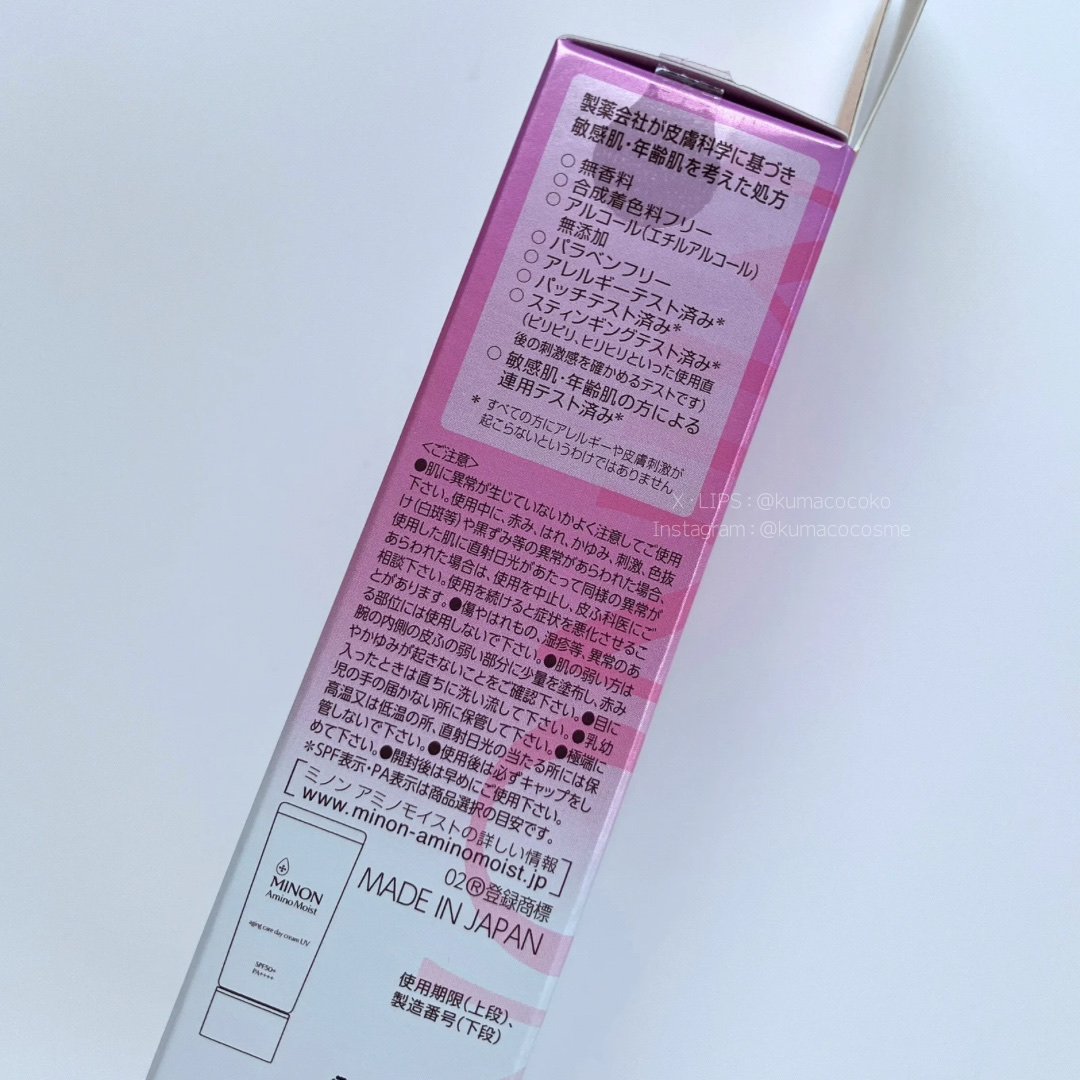 - 【シワ改善もできるUVクリーム】 SPF50+PA++++ シワ改善×UVカットが出来る薬用シワ改善UVクリーム。これ1本で美容クリーム・UVカット・化粧下地の3役。 シワ改善&しみ*予防成分「ナイアシンアミド」、肌あれ予防成分「グリチルリチン酸2K」配合。紫外線吸収剤&酸化亜鉛フリーで敏感肌を考えた処方。自然な輝きを放つ、やわらかなテクスチャーの化粧下地、見る角度で反射色が変わる「艶肌ダブルカラーパウダー」配合で自然な立体感を演出。 エイジングケア:年齢に応じたお手入れケア *メラニンの生成を抑え、しみ・そばかすを防ぐ (販売名:ミノンアミノモイストAU)【医薬部外品】
